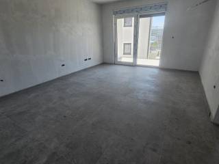 Die Wohnung hat eine Wohnfläche von 70 m und besteht aus einem Eingangsbereich, zwei Schlafzimmern, einem Badezimmer, einer Küche, einem Esszimmer und einem Wohnzimmer mit Zugang zu einer 10 m großen, überdachten Terrasse mit teilweisem Meerblick. Zur Wohnung gehört ein Parkplatz im gemeinsamen Innenhof.