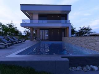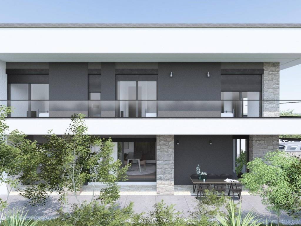 Zum Verkauf steht eine elegante und modern gestaltete Villa mit einer Gesamtfläche von 180 m in einer neu erbauten modernen Siedlung in der Nähe von Rovinj. Diese exklusive Immobilie zeichnet sich durch minimalistische Architektur mit geraden Linien, einem Flachdach und Glaswänden aus, die für viel Tageslicht und einen Blick auf das Meer und die umliegende Landschaft sorgen.