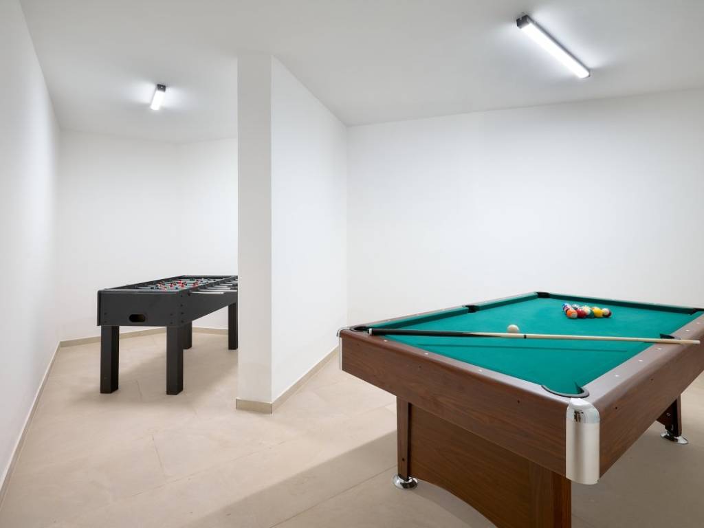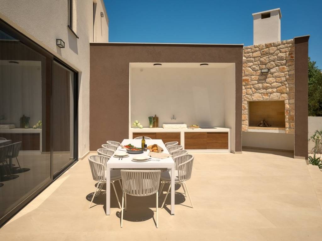 Die Villa ist mit erstklassiger Ausstattung und Technologie ausgestattet: Fußbodenheizung, modernste Samsung Wind-Free-Klimaanlagen, elektrische Sonnenschutzrollläden von Hella, Aluminiumfenster, ein beheizter Infinity-Pool und ein integriertes Soundsystem im Innenbereich und auf den Außenterrassen. Besonderer Wert wurde auf Design und Beleuchtung renommierter italienischer Hersteller (Luceplan, Deltalight) gelegt. Für Sicherheit und Komfort sorgen Videoüberwachung und ein automatisches Bewässerungssystem.