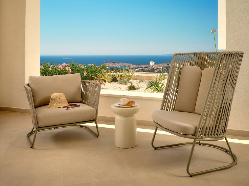 Im Obergeschoss befinden sich vier elegante Schlafzimmer, jedes mit eigenem Bad und privatem Balkon.