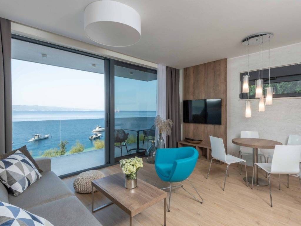 Diese Immobilie stellt eine ideale Investitionsmöglichkeit dar. Die Lage direkt am Meer, die ruhige Umgebung und die Nähe zum Zentrum von Omiš (nur zehn Gehminuten) machen sie zu einer besonderen Wahl.