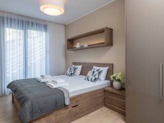 Im ersten Stock einer modernen Stadtvilla befindet sich diese elegante, 63 m große Wohnung, die modernes Design, Komfort und eine erstklassige Lage vereint.