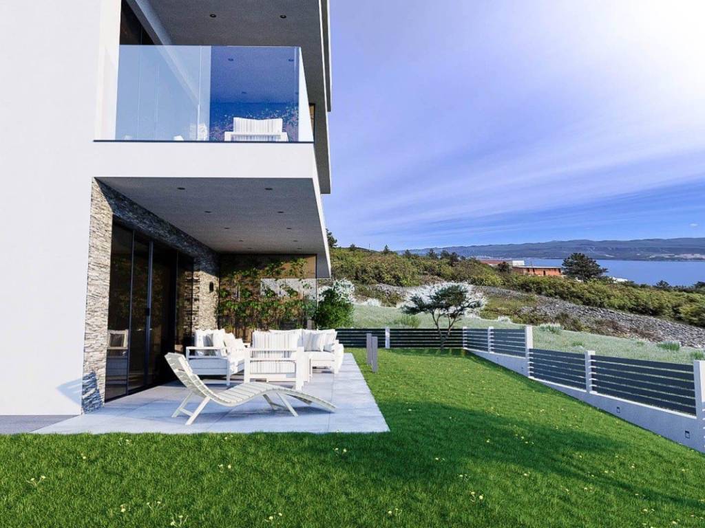 Zum Verkauf steht eine Wohnung auf der Insel Krk in Vrbnik. Sie befindet sich im ersten Stock eines neuen Mehrfamilienhauses. Die Gesamtwohnfläche beträgt 55,50 m und besteht aus einem Eingangsbereich, zwei Schlafzimmern, einem Badezimmer, einem separaten WC, einer Küche mit Esszimmer und einem Wohnzimmer mit Zugang zu einer überdachten Terrasse mit Meerblick.