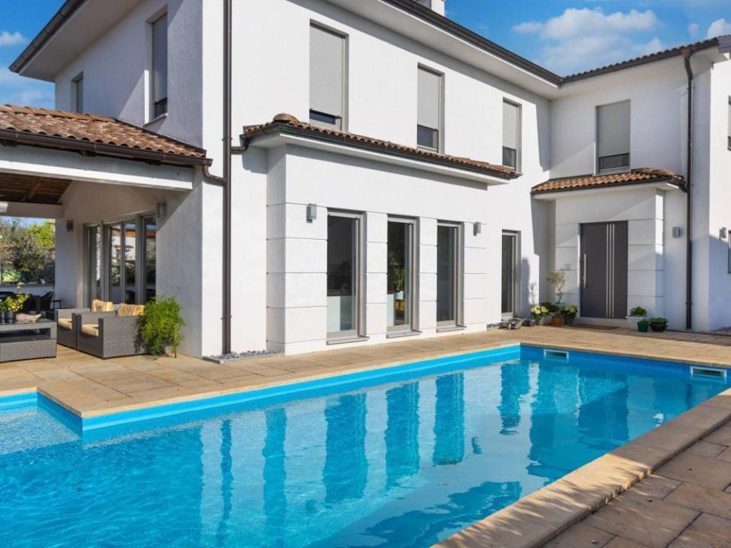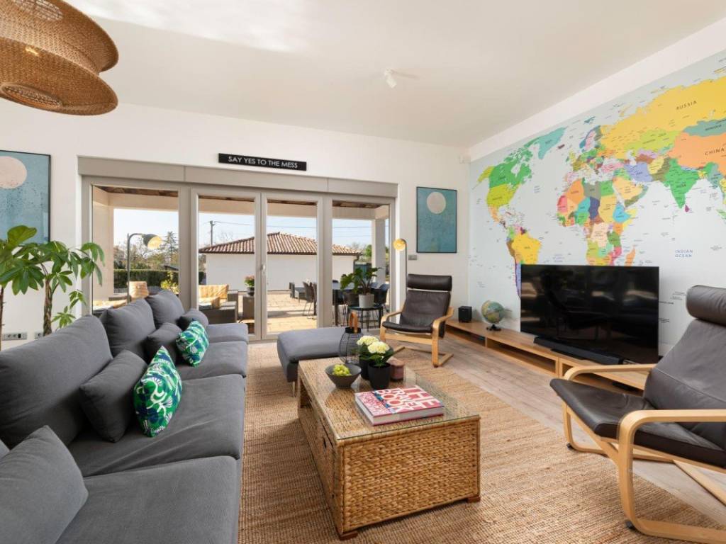 Das Haus ist mit neuen, modernen Möbeln ausgestattet und sofort bezugsfertig. Es wurde aus hochwertigen Materialien gebaut und verfügt über eine Kombination aus Keramik- und Holzböden, moderne Sanitäranlagen, Klimaanlage in allen Zimmern, einen Kamin, PVC-Fenster und eine Alarmanlage.