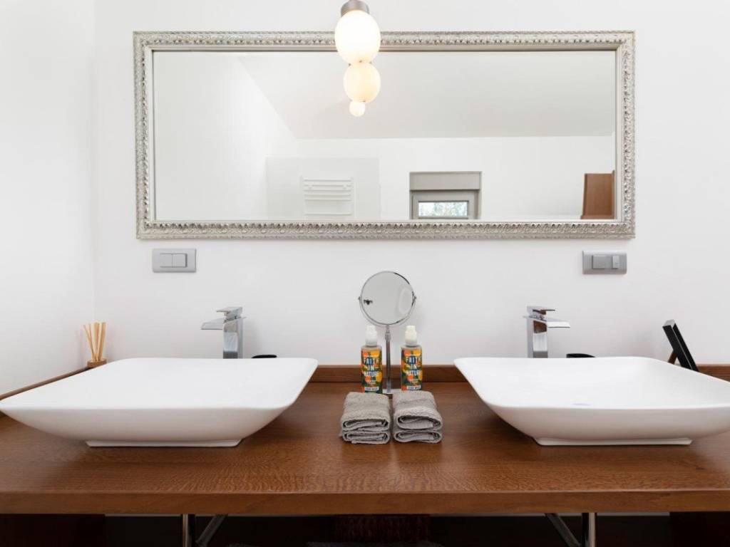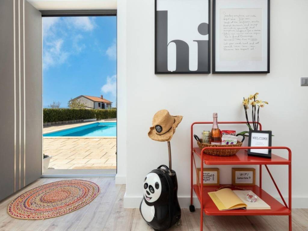 Der 850 m große Garten ist eingezäunt und mit mediterranen Pflanzen und Kies angelegt. Er umfasst einen Pool mit Liegewiese, eine Lounge-Ecke, einen Grillplatz und eine Garage mit zwei Stellplätzen. Die Lage ist etwa 3 km vom Meer und dem Zentrum von Malinska entfernt, was Ruhe und gleichzeitig die Nähe zu allen notwendigen Annehmlichkeiten gewährleistet.
