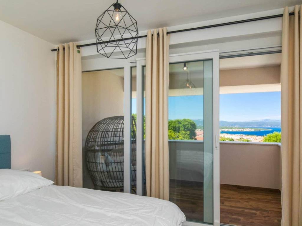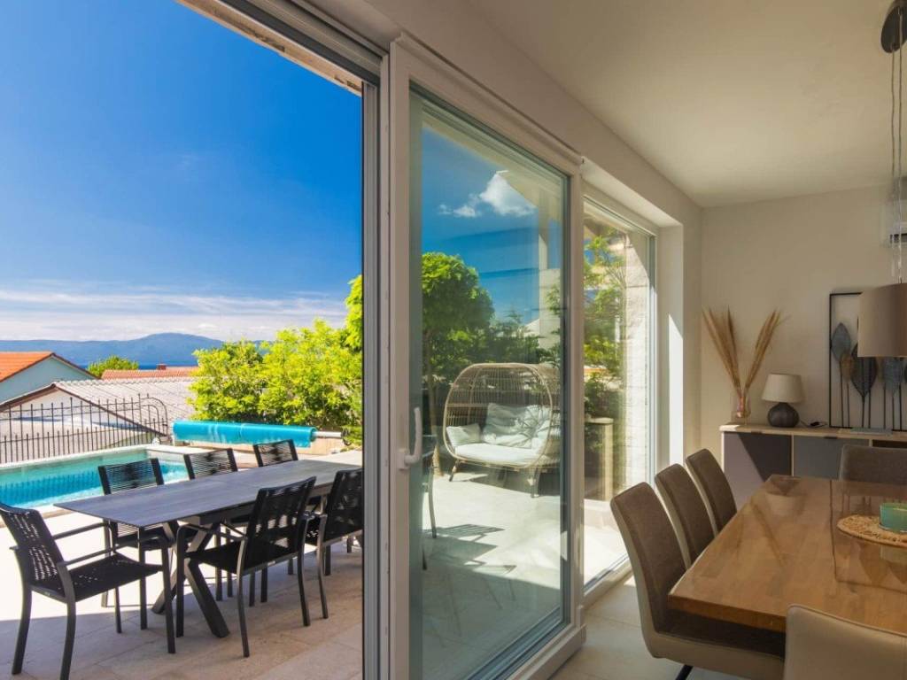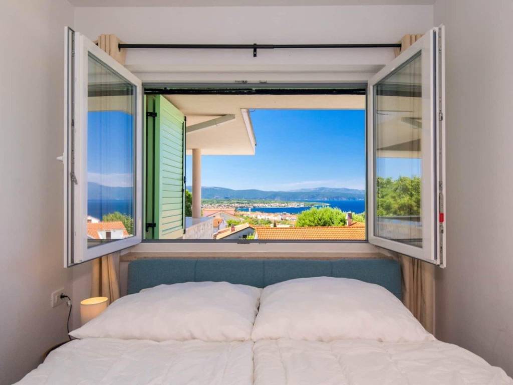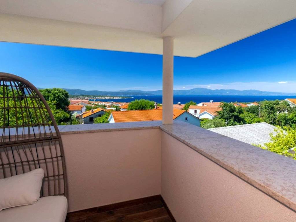 Auf der Insel Krk, in der Nähe von Malinska, steht eine Doppelhaushälfte mit einer Gesamtfläche von 115 m zum Verkauf, die auf einem Grundstück von etwa 150 m liegt. Das Haus besteht aus einem Erdgeschoss und einem Obergeschoss. Im Erdgeschoss befindet sich ein offen gestaltetes Wohnzimmer mit Küche und Esszimmer, ein Schlafzimmer, ein Badezimmer und ein Abstellraum. Im Obergeschoss befinden sich drei Schlafzimmer, von denen eines über ein eigenes Badezimmer verfügt, während sich die beiden anderen ein gemeinsames Badezimmer teilen. Vom Obergeschoss aus gelangt man auf eine Terrasse mit Meerblick.