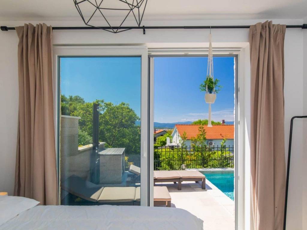 Es befindet sich in ruhiger Lage, etwa 1500 Meter vom Meer entfernt und nur wenige Autominuten vom Zentrum von Malinska und der Küste entfernt, wodurch eine gute Anbindung an die wichtigsten Einrichtungen der Stadt gewährleistet ist.