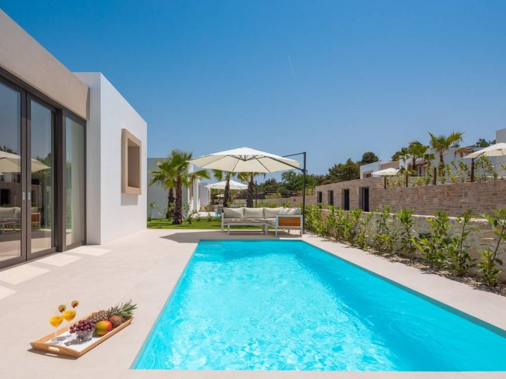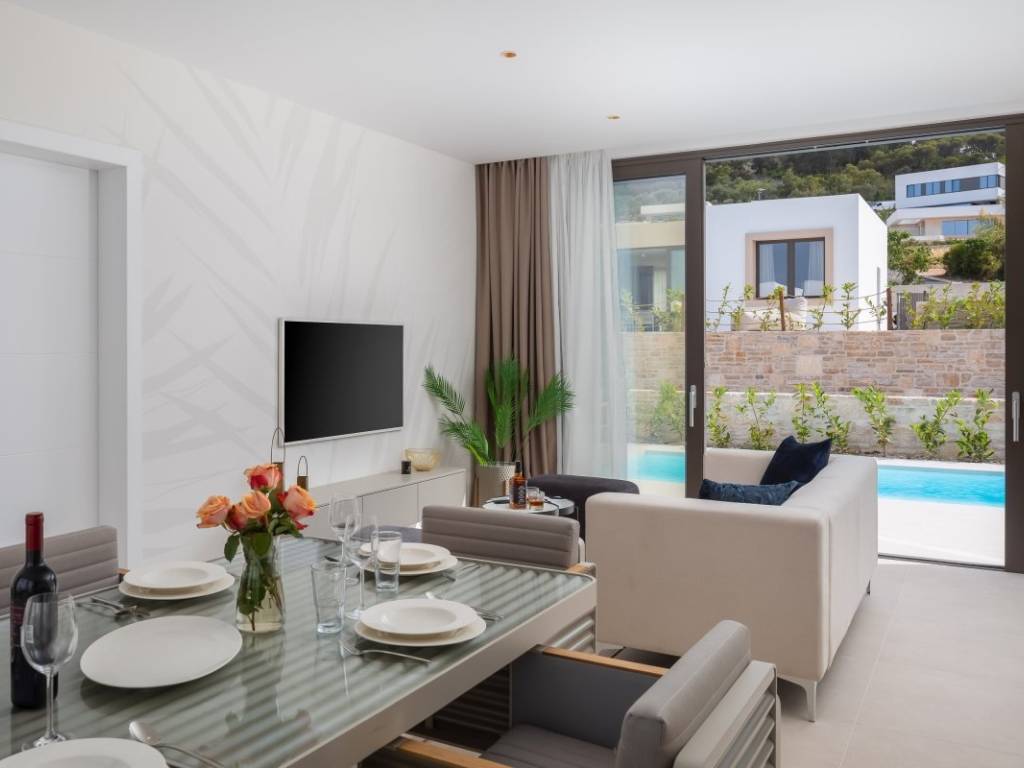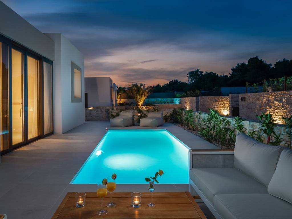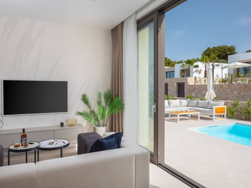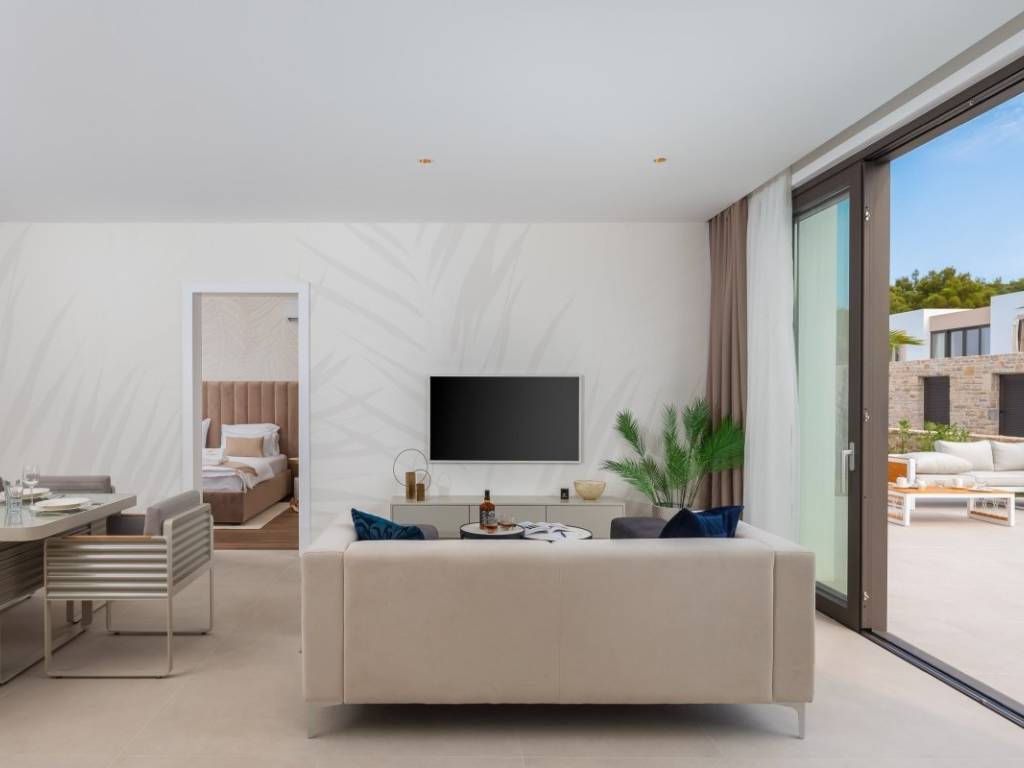Die moderne Villa liegt in zweiter Reihe zum Meer und befindet sich in einem modernen Resort auf der Insel. Umgeben von anderen Villen, unberührter Natur und klarem Meer vermittelt es ein Gefühl von Ruhe, Privatsphäre und Luxus.