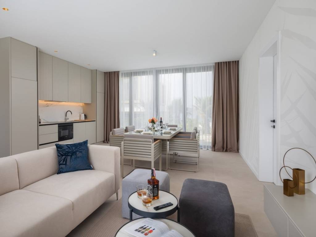 Beim Bau der Immobilie wurden hochwertige Materialien verwendet, für zusätzliche Sicherheit sorgen Fußbodenheizung und Sicherheitstüren. Neben dem Swimmingpool und der Liegewiese auf der Terrasse der Immobilie verfügt dieses Resort über eine Strandbar, einen Wasserpark, ein Restaurant, eine Rezeption und viele weitere Dinge, die zum Komfort des Aufenthalts in der Immobilie beitragen.