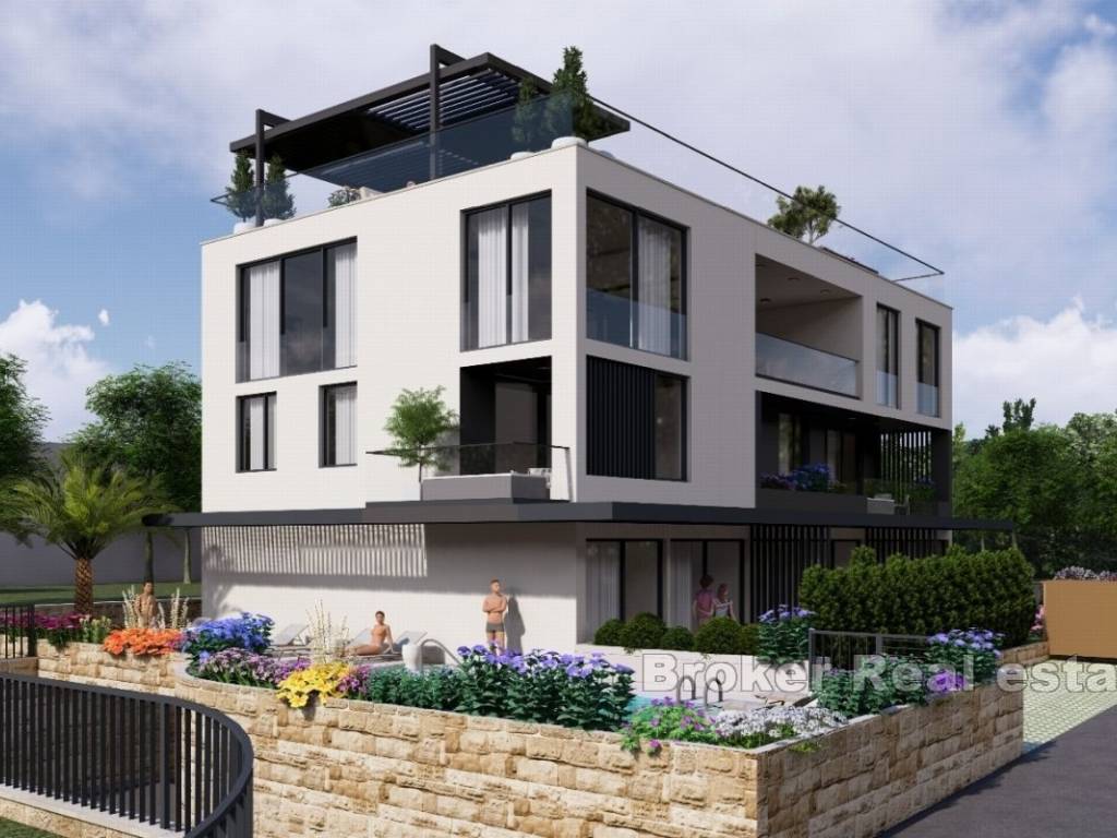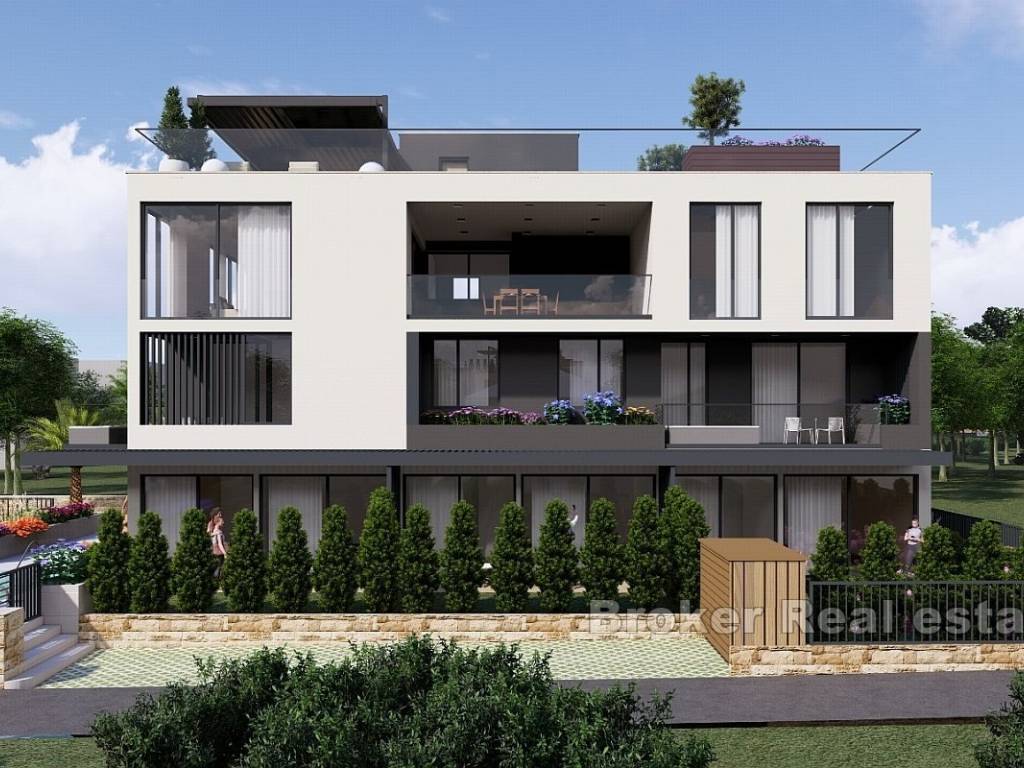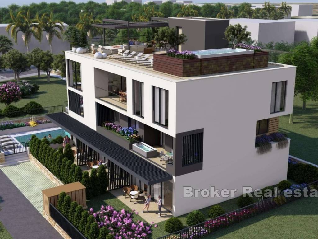 Zum Verkauf steht ein luxuriöses Penthouse in einem neuen Gebäude mit Panoramablick aufs Meer. Die Wohnung mit vier Schlafzimmern erstreckt sich über die gesamte Etage des Gebäudes auf 249 m2 Nettonutzfläche.