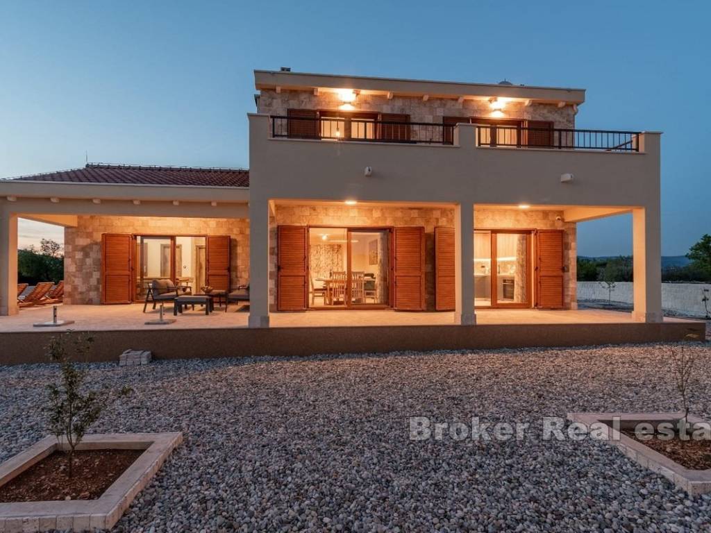 Ein modernes Familienhaus in einem ruhigen Teil des Inneren von Čiovo, nur wenige Autominuten von den gepflegten Stränden und der historischen Stadt Trogir entfernt.