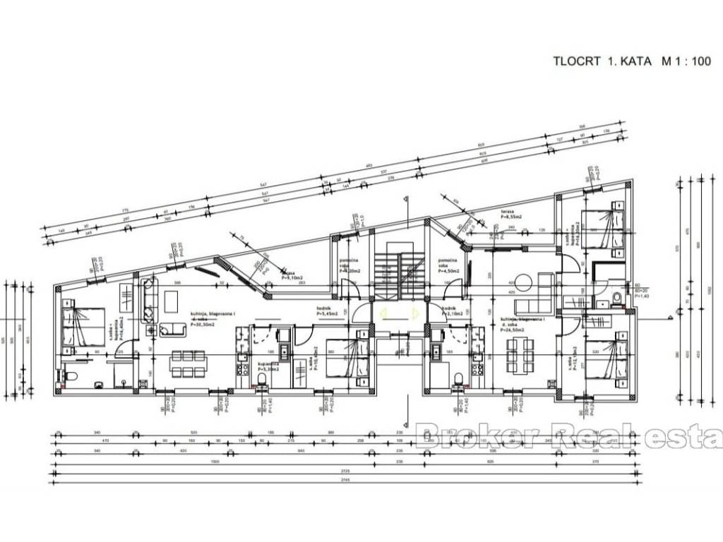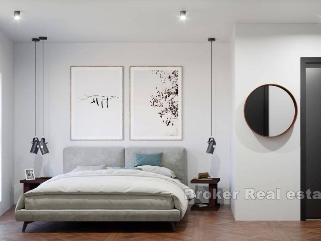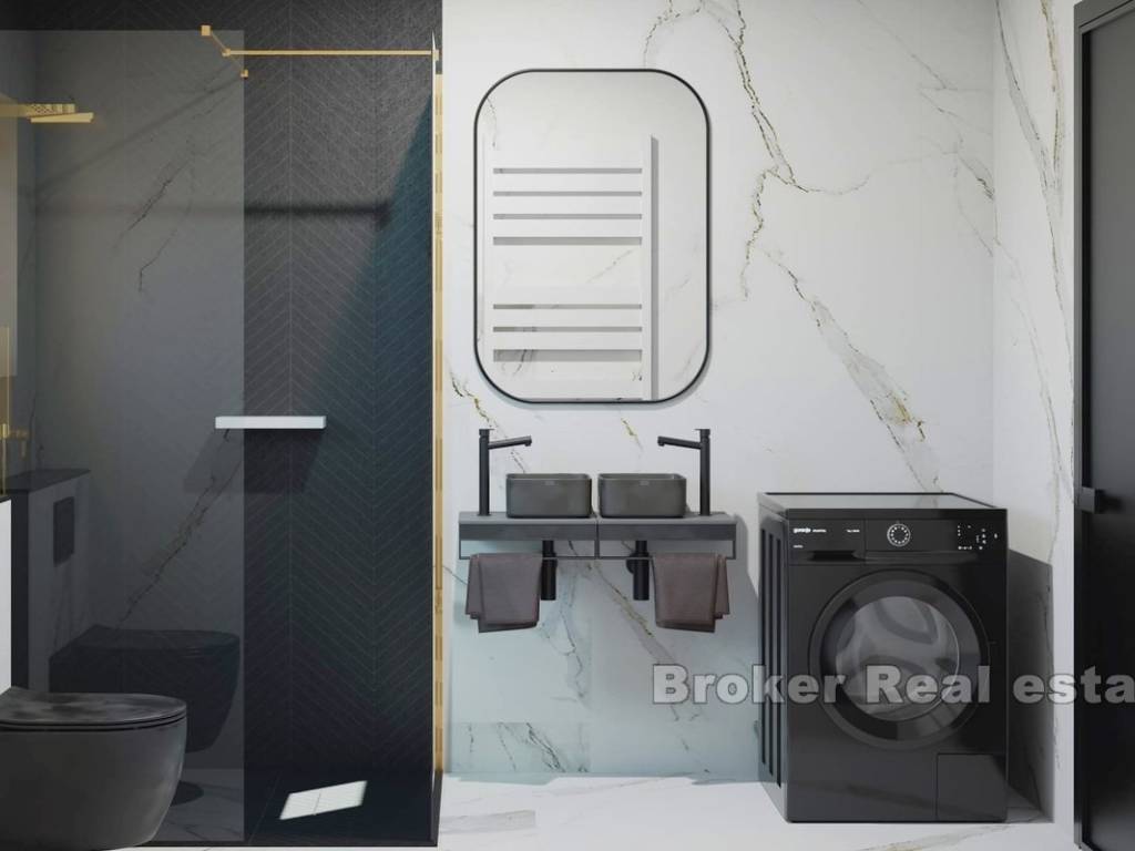 Zum Verkauf steht eine Wohnung mit Parkplatz und Meerblick, insgesamt 30 Meter vom ersten Strand entfernt. Die betreffende Wohnung befindet sich im ersten Stock eines Wohnhauses mit insgesamt 6 Wohnungen. Es erstreckt sich auf 78 m2 Nettonutzfläche und besteht aus drei Schlafzimmern, eines davon en suite, zwei Badezimmern, Küche, Esszimmer, Wohnzimmer und Loggia.