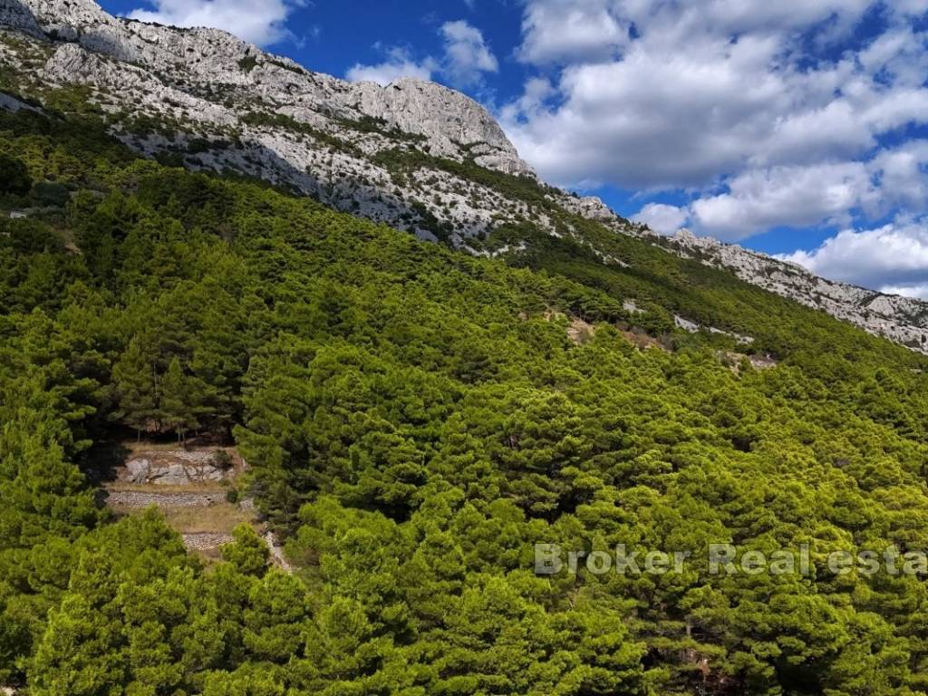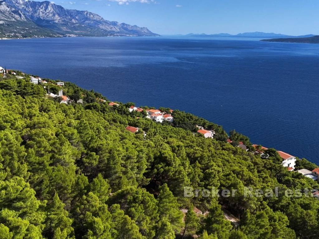 Baugrundstück mit Meerblick, Fläche 941 m2, gelegen in einer kleinen Stadt unweit der Stadt Omiš. Das Land ist