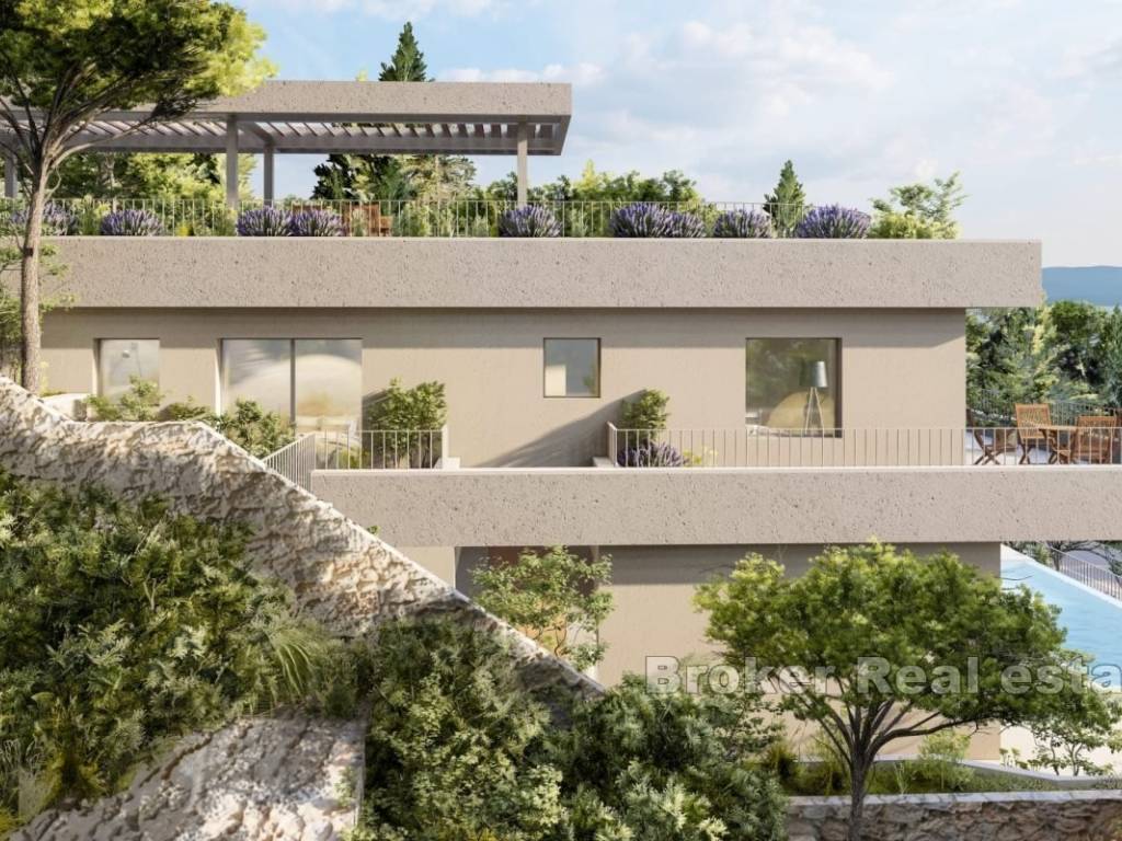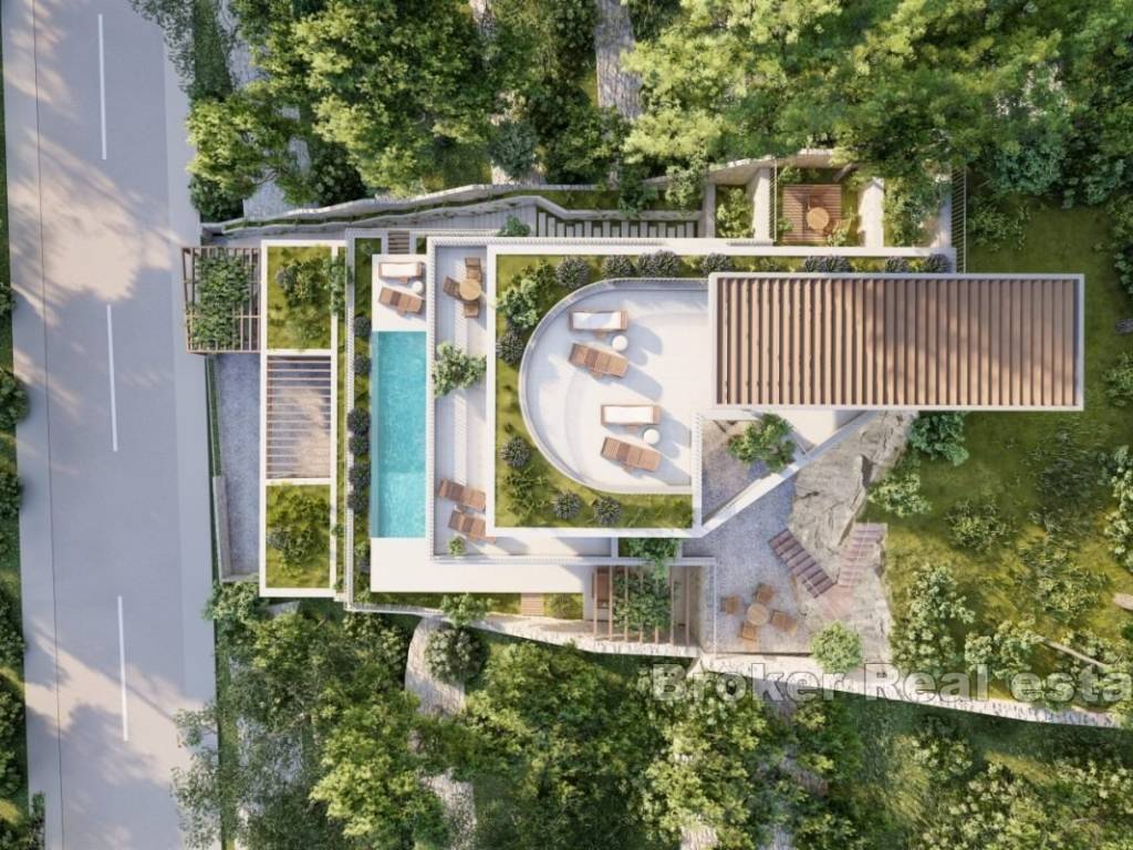 Es liegt auf einem Hügel in einer ruhigen und natürlichen Umgebung mit beeindruckendem Blick auf das Meer und verfügt über eine gepflegte Zufahrtsstraße. Das Grundstück wird zusammen mit einer gültigen Baugenehmigung für eine zweistöckige Villa mit Pool mit einer Gesamtbruttofläche von 270 m2 verkauft. Das Meer ist 240 Meter von der Unterkunft entfernt, während ein Geschäft, ein Restaurant, ein Café und ähnliche Annehmlichkeiten nur wenige Autominuten entfernt sind. Die Ruhe und Stille, die die Lage des Grundstücks und die es umgebende Natur bieten, sowie die Aussicht und Nähe zum Meer und den grundlegenden Annehmlichkeiten machen dieses Grundstück für den Bau eines Hauses zum ganzjährigen Wohnen oder eines Ferienhauses geeignet.