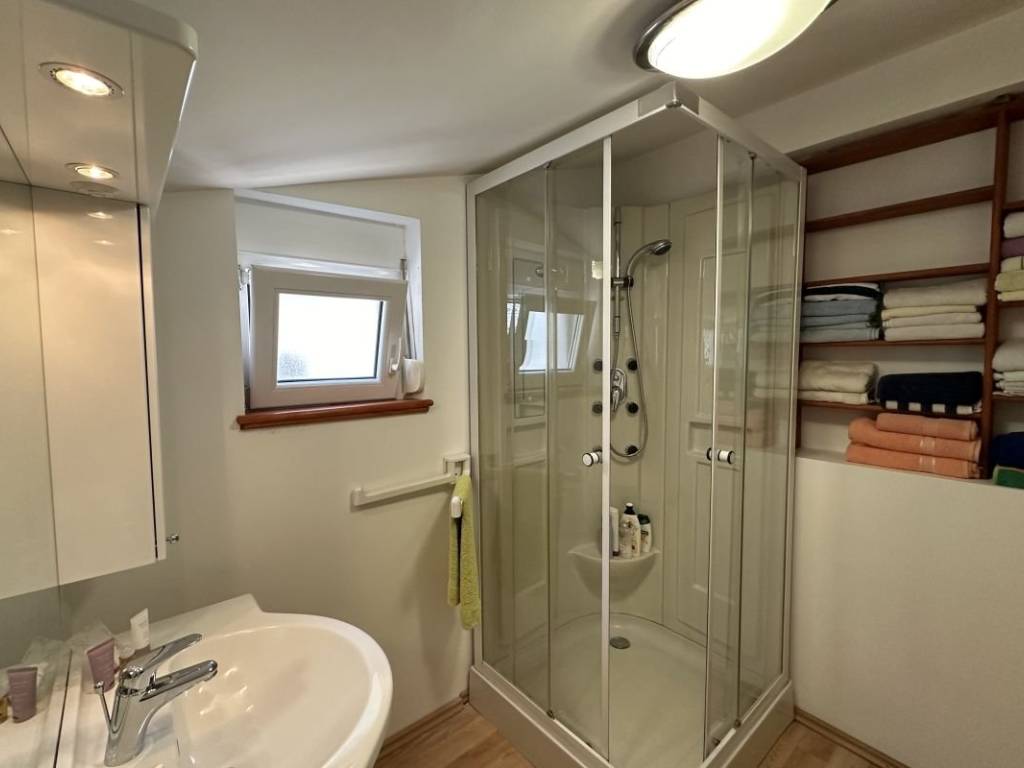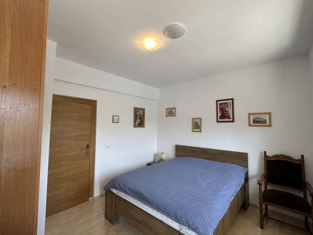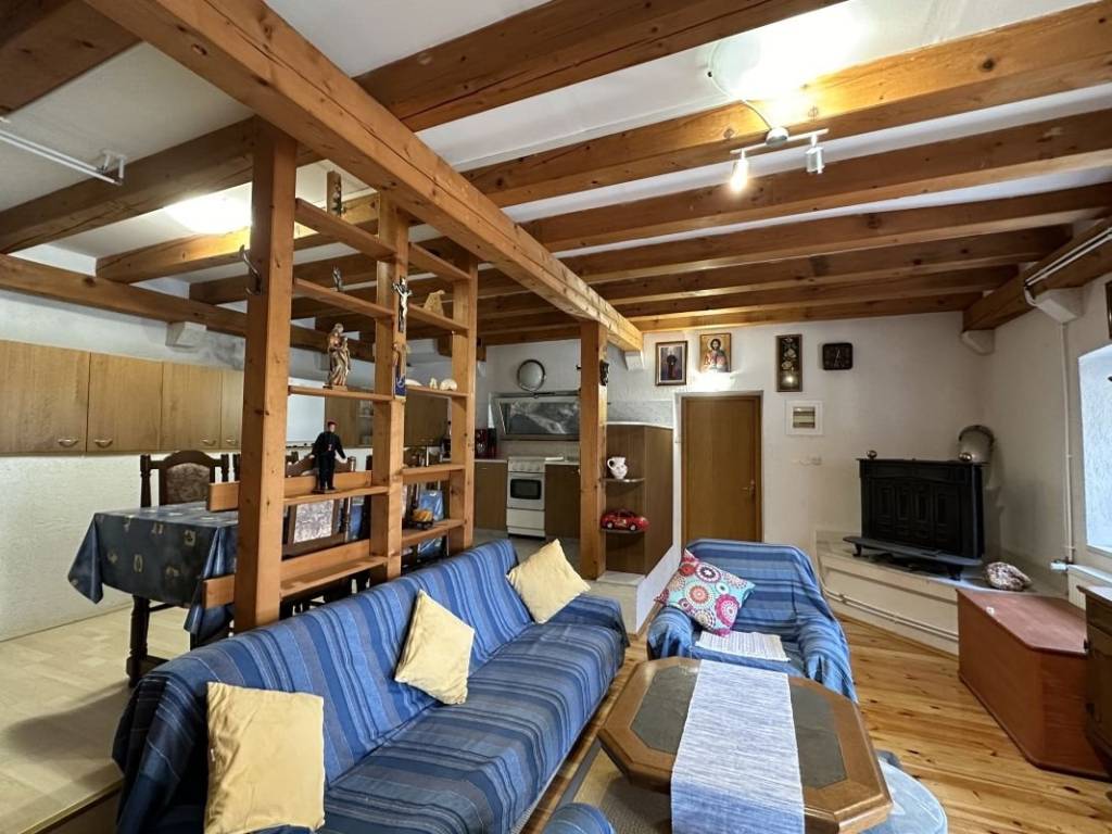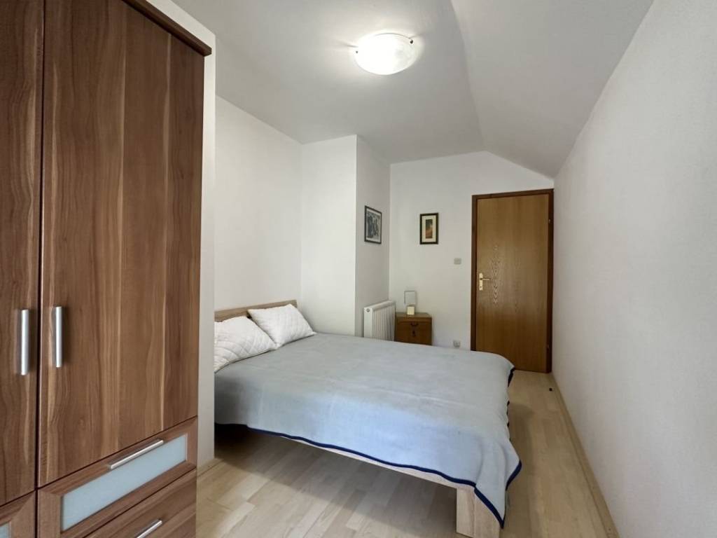 Das zweite Haus ist aus modernen Materialien gebaut. Es umfasst im Erdgeschoss einen Wohn- und Essbereich, eine voll ausgestattete Küche und ein Badezimmer. Im ersten Stock befinden sich ein Doppelzimmer mit einem Zustellbett, zwei Einzelzimmer und ein zusätzliches Badezimmer. Beide Häuser sind durch einen Innengang miteinander verbunden.