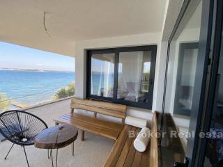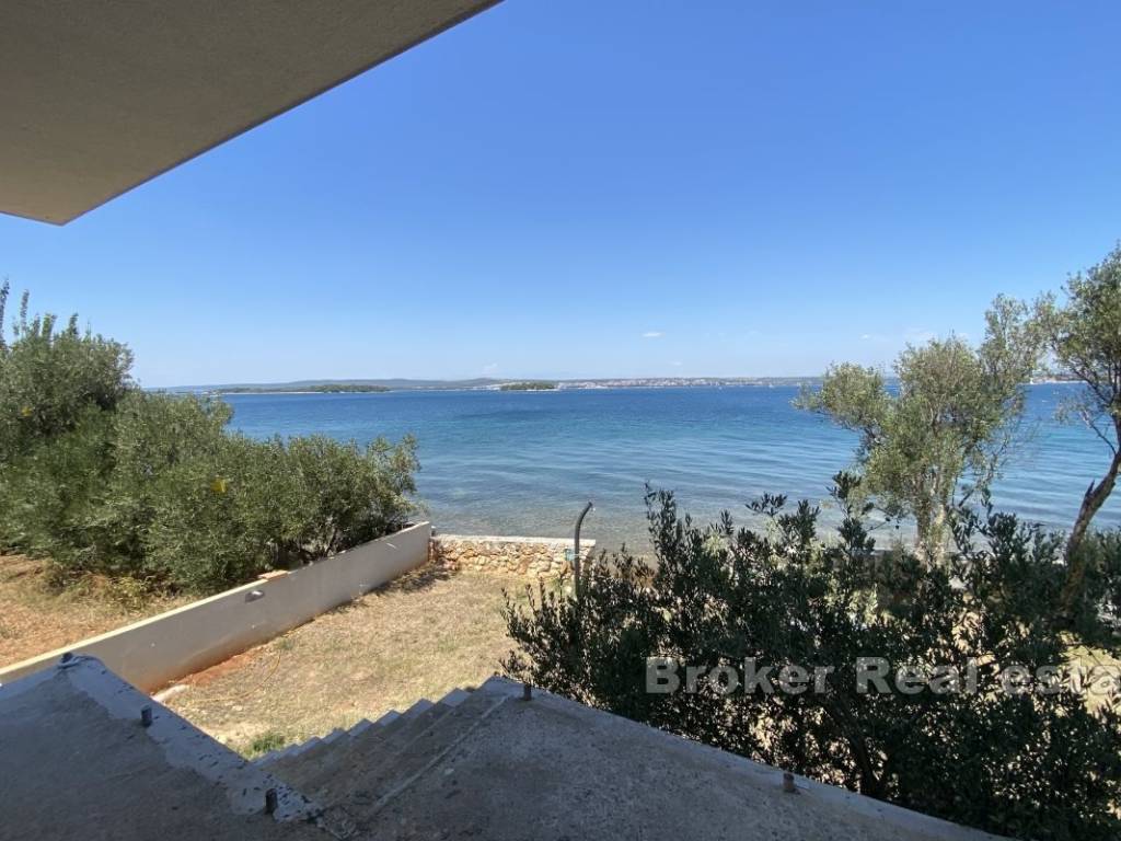 Die erste Etage enthält eine große Wohnung, die aus Küche, Esszimmer, Wohnzimmer, Badezimmer und drei Schlafzimmern besteht. Vom Wohnzimmer aus gelangt man auf eine große Terrasse mit freiem Blick auf das Meer.