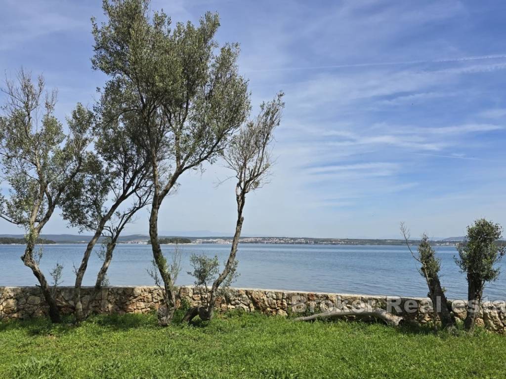 Das Erdgeschoss ist in eine große Wohnung aufgeteilt, die aus Küche, Esszimmer, Wohnzimmer, Badezimmer und drei Schlafzimmern besteht. Von der Wohnung aus hat man Zugang zum Garten, der direkt zum Strand führt.