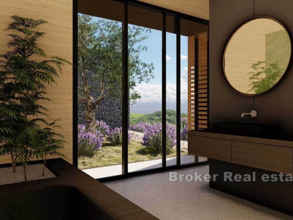 Die Villa wurde sorgfältig entworfen, um sich perfekt in die umgebende Landschaft einzufügen, wobei Steinmaterialien und authentische Elemente verwendet wurden, die die lokalen Traditionen widerspiegeln.