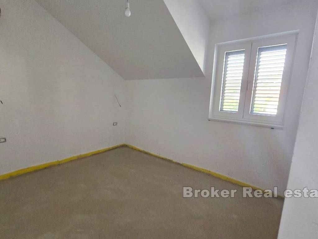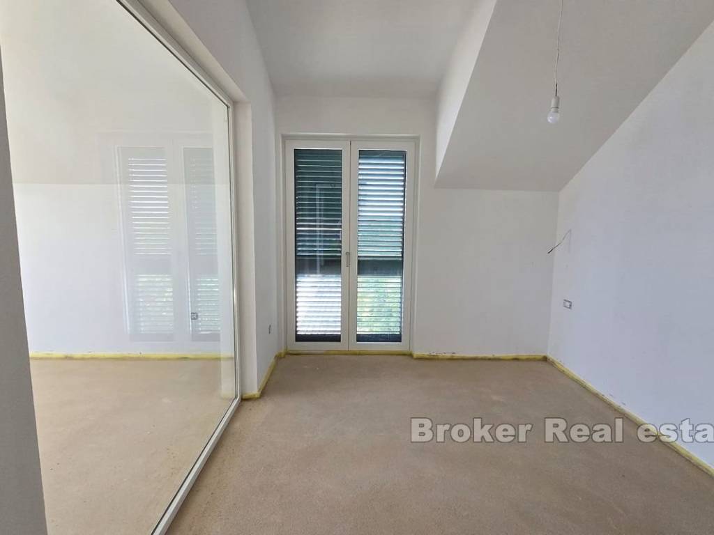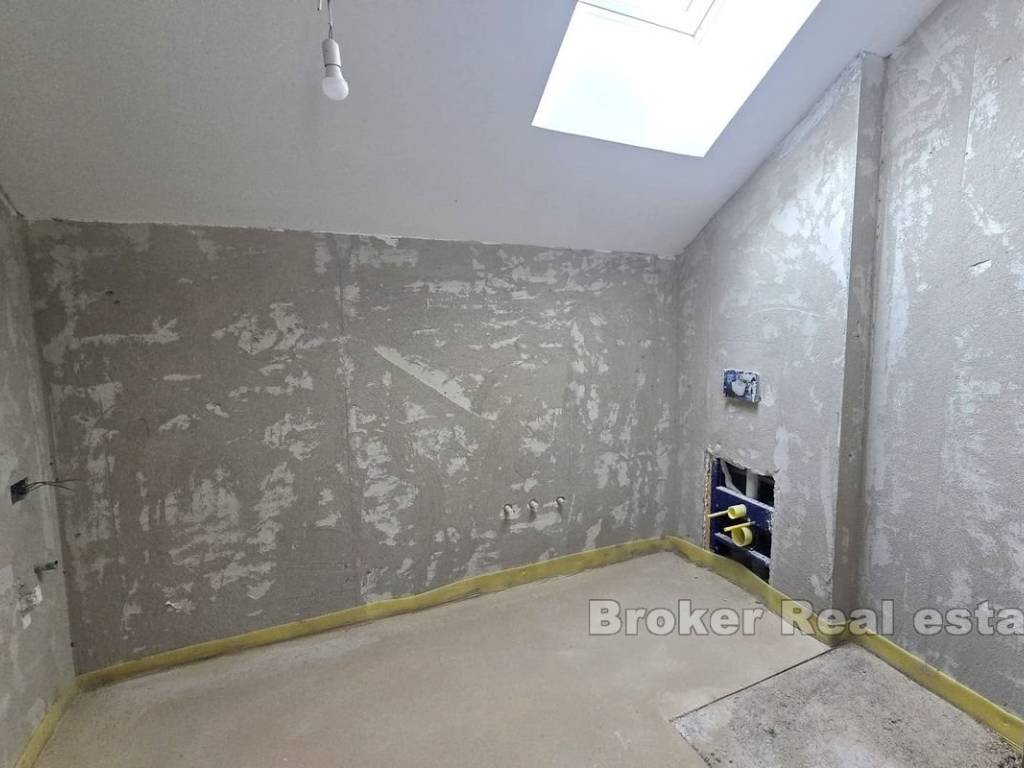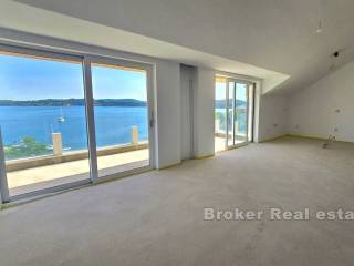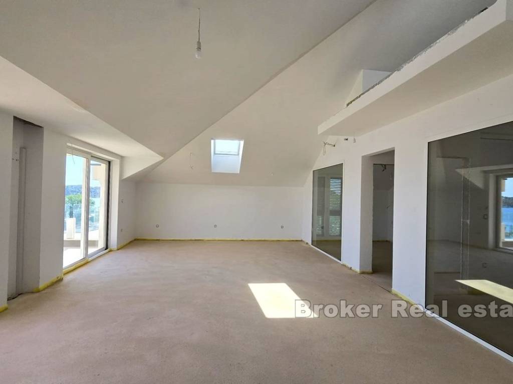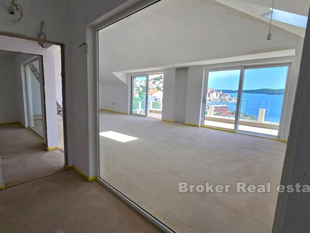 Die Wohnung befindet sich in einem Neubau in der Nähe des Meeres und des Strandes, ist hell und sonnig und bietet einen spektakulären Blick auf die Stadt und den Šibenik-Kanal. Sie befindet sich im letzten Stockwerk, das mit einem Aufzug erreichbar ist. Der Investor überließ den neuen Eigentümern die Innenausstattung der Wohnung, die Wahl der Farbe und der Art der Fliesen Parkett als freie Wahl im Rahmen des Kaufpreises.
