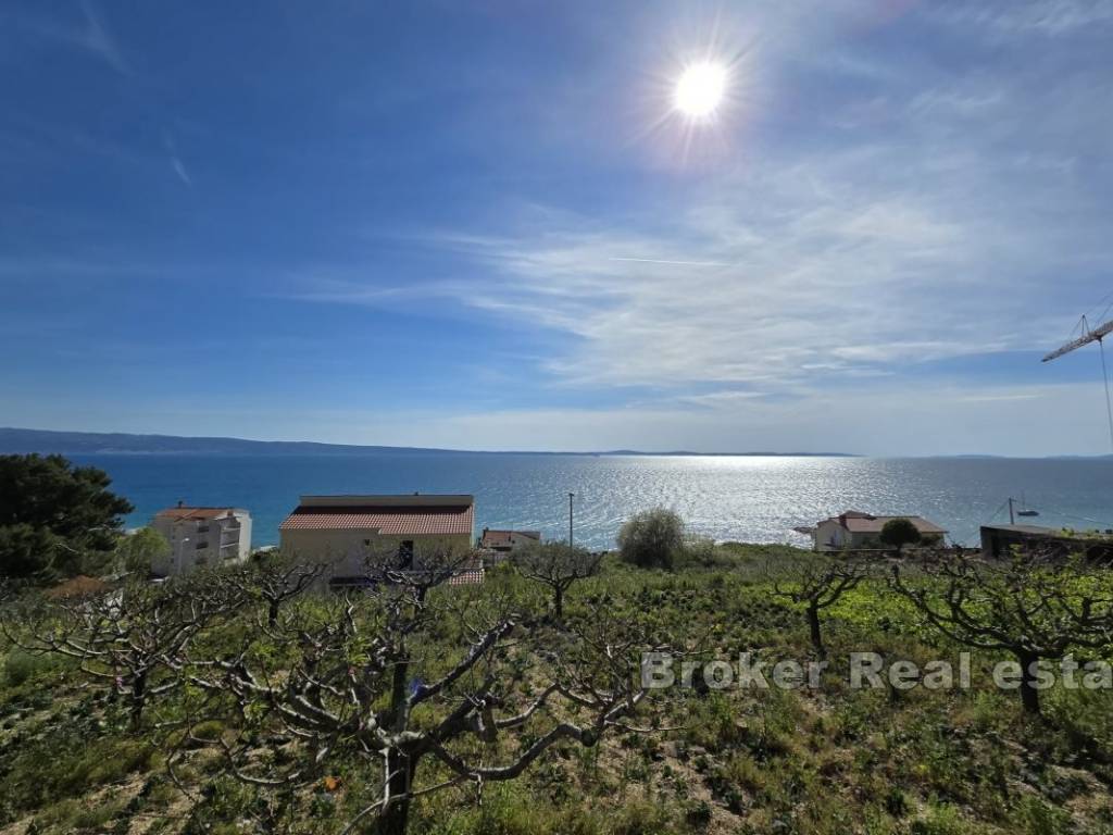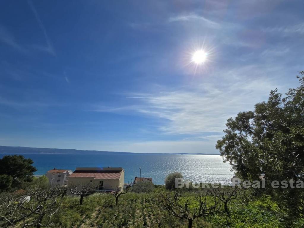 Baugrundstück mit Meerblick, Fläche 856 m2, gelegen in einer kleinen Stadt unweit der Stadt Omiš. Das Grundstück liegt auf einem Hügel in einer ruhigen und natürlichen Umgebung mit freiem Blick auf das Meer und verfügt über eine asphaltierte Zufahrtsstraße sowie Wasser- und Stromanschlüsse in unmittelbarer Nähe. Das Grundstück ist ideal für den Bau einer dreistöckigen Villa mit Swimmingpool. Das Meer ist nur 100 Meter vom Land entfernt, während ein Geschäft, ein Restaurant, ein Café und ähnliche Einrichtungen nur wenige Autominuten entfernt liegen. Die Ruhe und Stille, die die Lage des Grundstücks bietet, sowie die Aussicht und Nähe zum Meer und den grundlegenden Annehmlichkeiten machen dieses Grundstück für den Bau eines Hauses zum ganzjährigen Wohnen oder eines Ferienhauses geeignet.