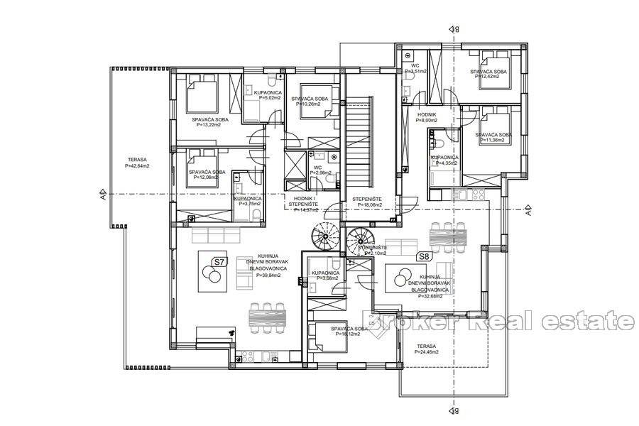 S8 Apartment, 2. Etage, Penthouse Nettofläche 170,34 m2.