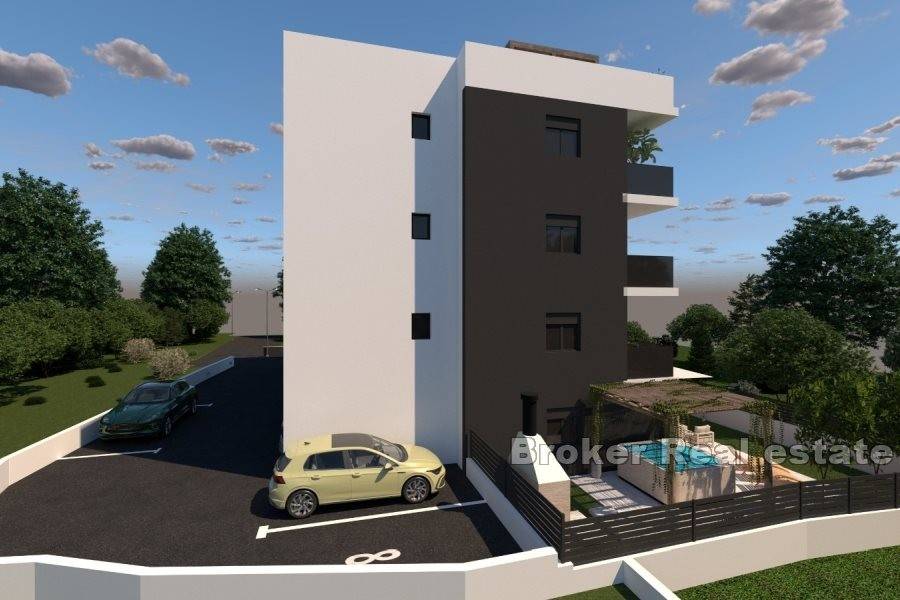 Auf der Südseite der Insel Čiovo entsteht ein modernes Gebäude mit 12 Wohnungen. Die Lage ist großartig, nahe am Meer und der Zugang zum Gebäude erfolgt über eine der Hauptstraßen der Insel. Die Wohnungen in den oberen Etagen bieten einen Blick auf das Meer und die Inseln. Die Anlage wird nach Süden ausgerichtet und von Mehrfamilienhäusern umgeben sein.