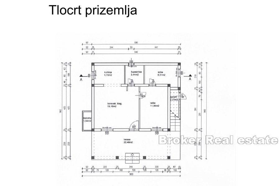 Apartmenthaus mit Meerblick in einer ruhigen Bucht in Rogoznica, 140 m vom Meer entfernt. Das Haus mit einer Wohnfläche von 154 m2 befindet sich auf einem Grundstück von 391 m2 und erstreckt sich über zwei Etagen Erdgeschoss und Obergeschoss. Es gibt eine Zweizimmerwohnung im Erdgeschoss und im ersten Stock. Die Apartments bestehen aus einer Küche mit Esszimmer und Wohnzimmer, einem Badezimmer, zwei Schlafzimmern und einer Terrasse mit Meerblick. Die Immobilie wird möbliert verkauft.