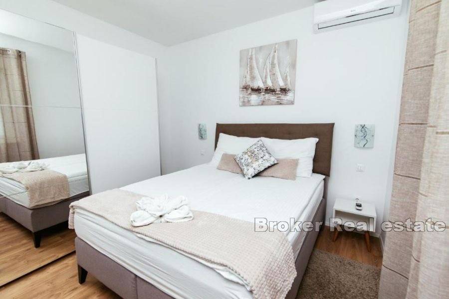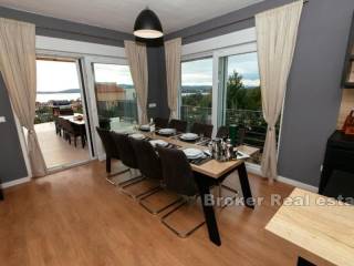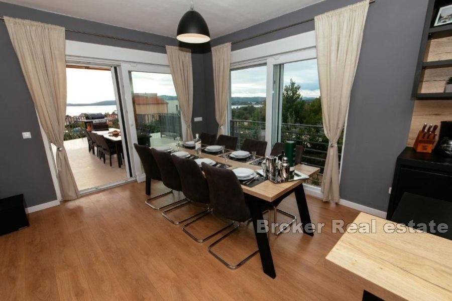 Zum Verkauf steht ein Haus mit Swimmingpool und Meerblick in ruhiger Lage, nicht weit von der Stadt Sibenik, dem Meer und dem Strand entfernt. Es wurde auf einem Grundstück von 462 m2 erbaut und erstreckt sich über zwei Etagen. Das Haus besteht aus zwei zweistöckigen Wohnungen und eignet sich hervorragend als Kombination aus Wohnen und touristischer Vermietung. Eine Wohnung besteht aus einer Speisekammer, Toilette, Wohnzimmer und Küche mit Esszimmer im Erdgeschoss und drei Schlafzimmern und zwei Badezimmern im ersten Stock. Die zweite Wohnung besteht aus einer Speisekammer und Toilette, einem Wohnzimmer, einer Küche und einem Esszimmer im Erdgeschoss sowie zwei Schlafzimmern und einem Badezimmer im ersten Stock. Das Haus verfügt über insgesamt fünf Schlafzimmer und bietet Platz für 10 Personen. Es wird im Sommer an Touristen vermietet und weist eine hervorragende Auslastung und Gästebewertung auf. Der Vorteil ist sicherlich die ruhige Lage, aber auch der umzäunte Garten mit Swimmingpool und Sonnendeck, ideal für Sommertreffen. Es gibt auch Parkplätze für drei Autos. Die Stadt Sibenik ist 7 km entfernt, der Flughafen Split ist 50 km entfernt, die Promenade und die Strände sind 10 Gehminuten vom Haus entfernt.