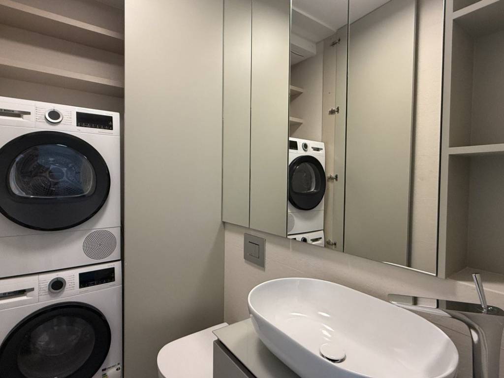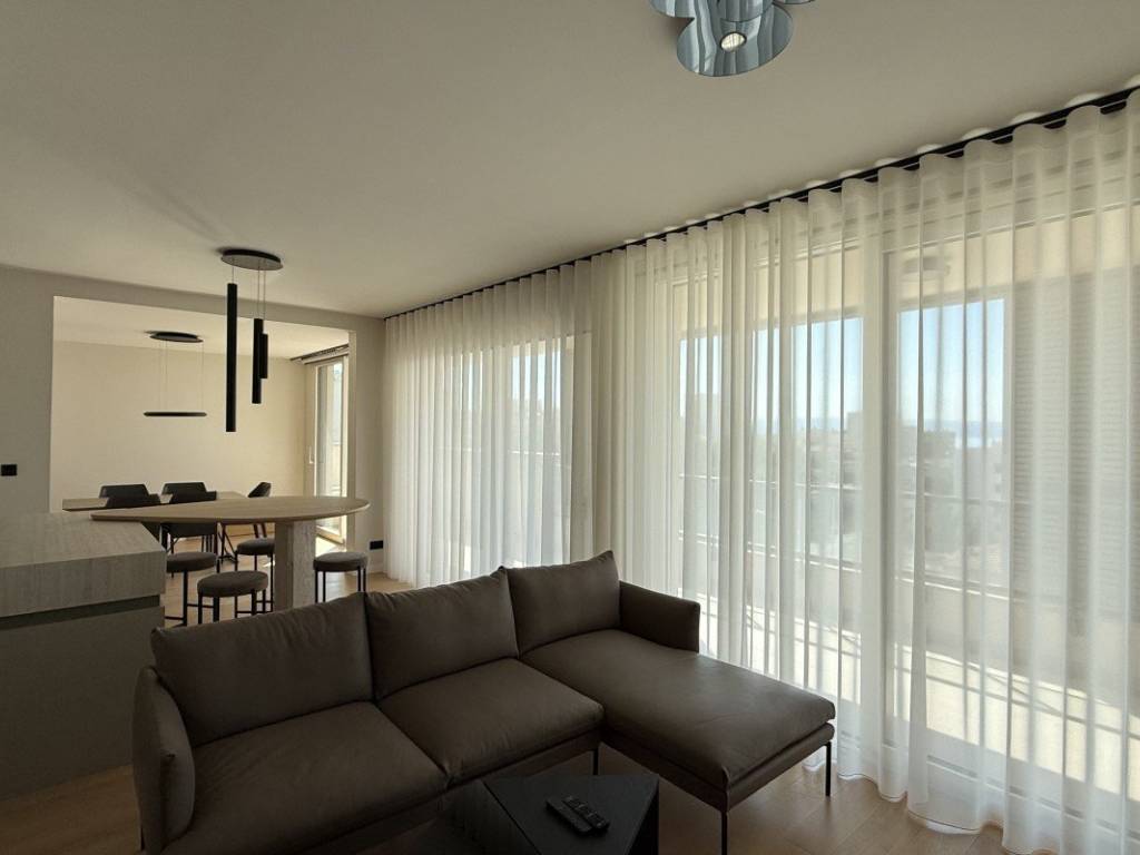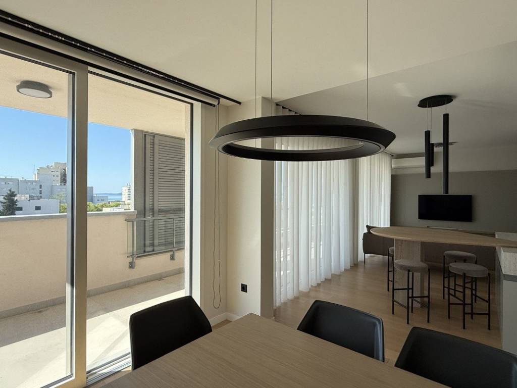 Zu vermieten: Designer-Penthouse mit zwei Schlafzimmern in einem Neubau nahe dem Zentrum von Split. Die Wohnung besticht durch luxuriöse Ausstattung, Privatsphäre und Ruhe und ist somit ideal für den Alltag ob urbanes oder ruhiges Leben. Zwei Garagenstellplätze sorgen für zusätzlichen Komfort.