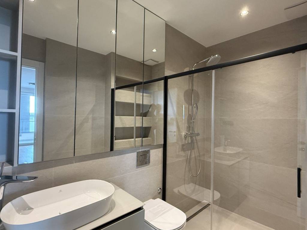 Die Wohnung bietet ca. 80 m Wohnfläche sowie ca. 70 m Terrasse und Balkon. Vom Eingangsbereich gelangt man in einen offenen Wohnbereich mit Wohnzimmer, Küche und Esszimmer sowie einem weiteren Badezimmer, einem Gäste-WC und zwei Schlafzimmern. Ein Schlafzimmer öffnet sich zur nach Süden ausgerichteten Hauptterrasse mit herrlichem Blick auf das Meer und die Stadt, während das zweite Schlafzimmer über einen eigenen, ca. 10 m großen Balkon verfügt. Vom Wohnbereich aus erreicht man eine großzügige Terrasse mit Blick auf das Meer und die vorgelagerten Inseln.
