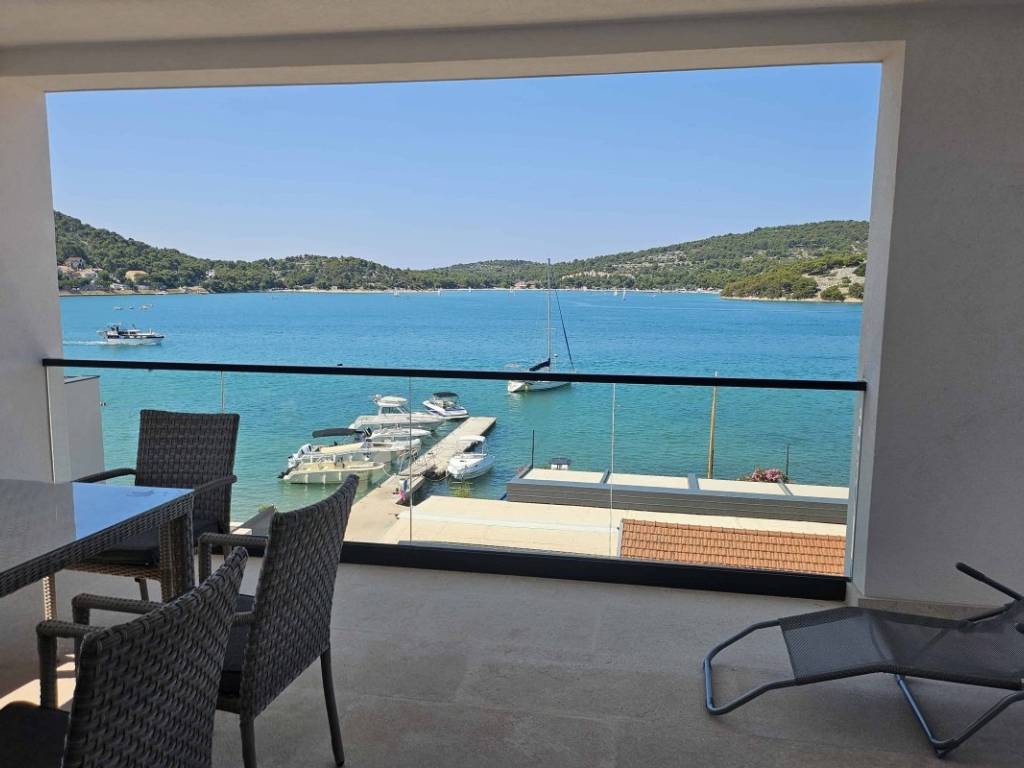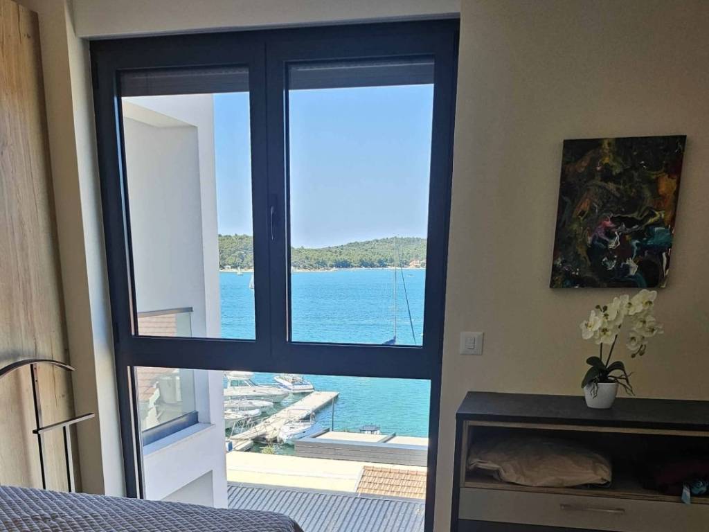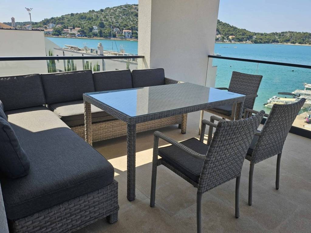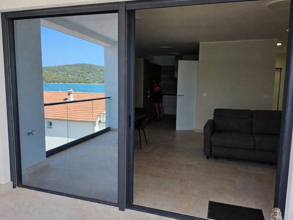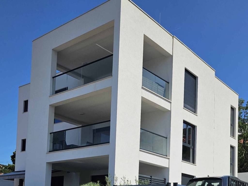 In außergewöhnlicher Lage, nur 30 Meter vom Meer entfernt, steht eine geräumige Drei-Zimmer-Wohnung mit Meerblick zum Verkauf. Sie befindet sich im dritten Stock eines kleinen Neubaus und bietet eine Wohnfläche von 90 m.