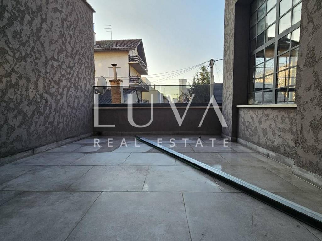 Die Immobilie besteht aus vier funktionalen Etagen, jeweils mit eigenem Badezimmer und zugehörigen Terrassen. Im Innenhof stehen vier Stellplätze zur Verfügung.