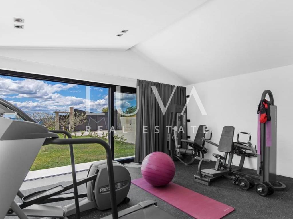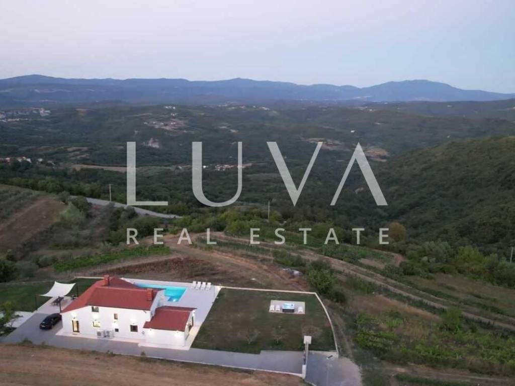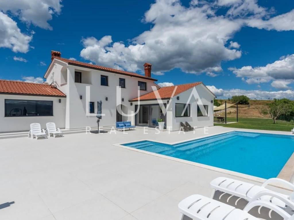 Auf einer Höhe von 396 m, in der ruhigen Siedlung Vrh nahe Buje, befindet sich diese beeindruckende Villa, die absolute Ruhe, Privatsphäre und einen einzigartigen Blick auf die istrischen Hügel bietet.