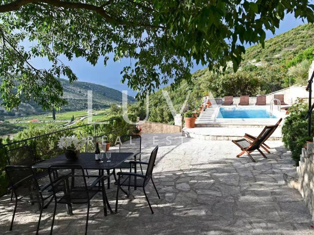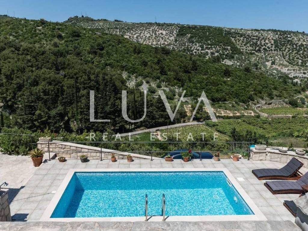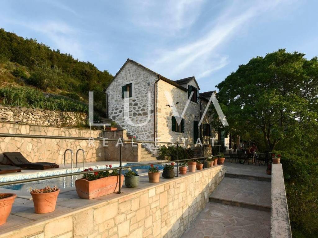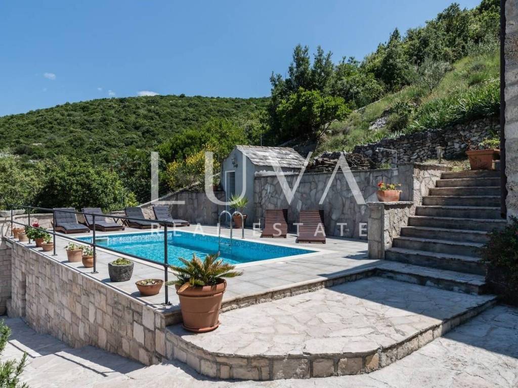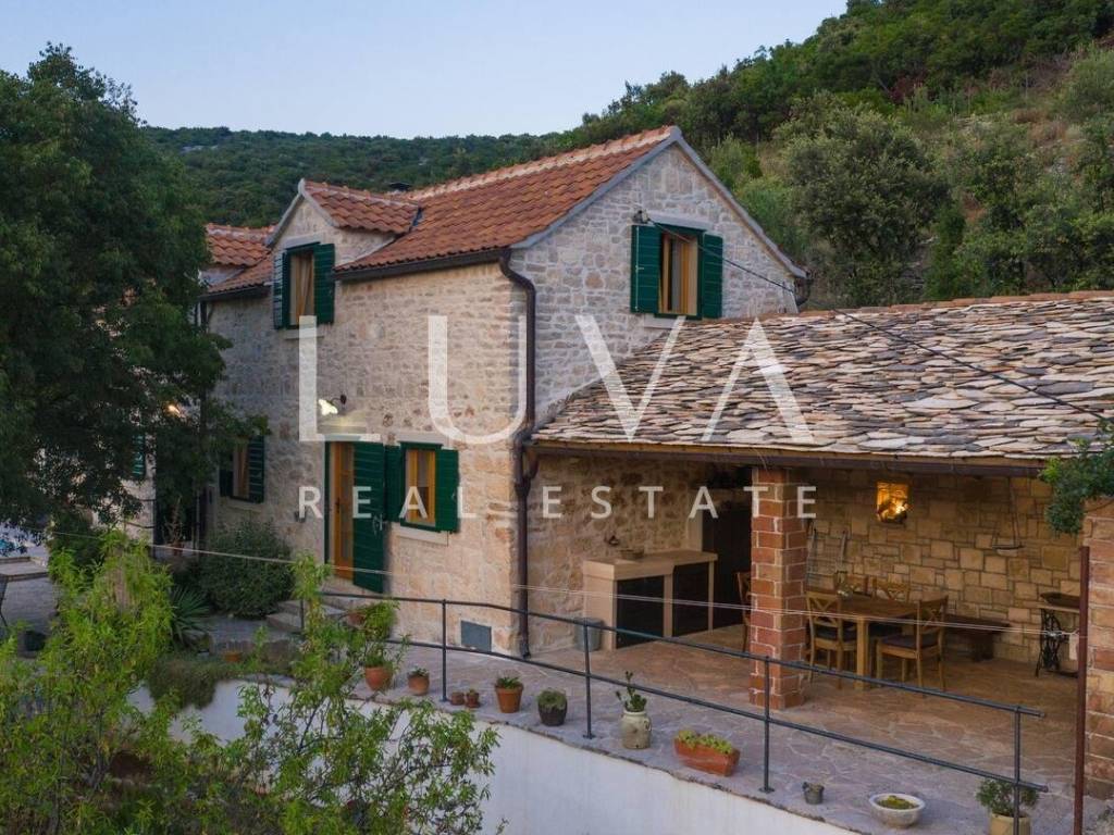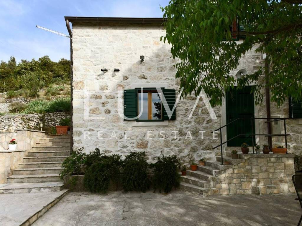 Im ruhigen Ort Dol, auf der Insel Brač, steht ein wunderschönes authentisches Steinhaus zum Verkauf, das historischen Charme mit modernem Komfort verbindet. Das Haus ist über 100 Jahre alt, wurde jedoch 2019 vollständig renoviert, wobei der ursprüngliche dalmatinische Stil erhalten blieb und gleichzeitig alle modernen Annehmlichkeiten für einen komfortablen Aufenthalt integriert wurden. Es befindet sich auf einem Grundstück von 1.950 m², während die Wohnfläche 130 m² beträgt. Vom Grundstück und Haus bietet sich ein schöner Blick auf das Meer, und die Küste ist nur 2,8 Kilometer entfernt.