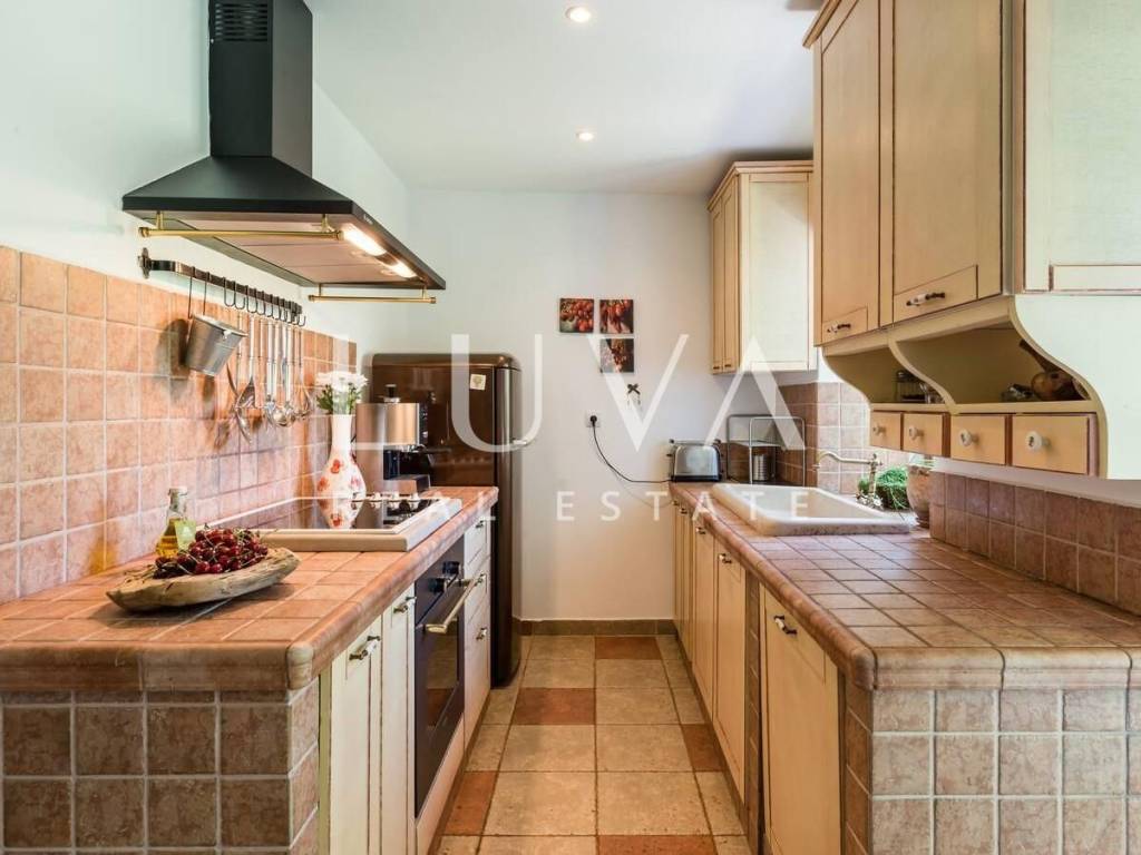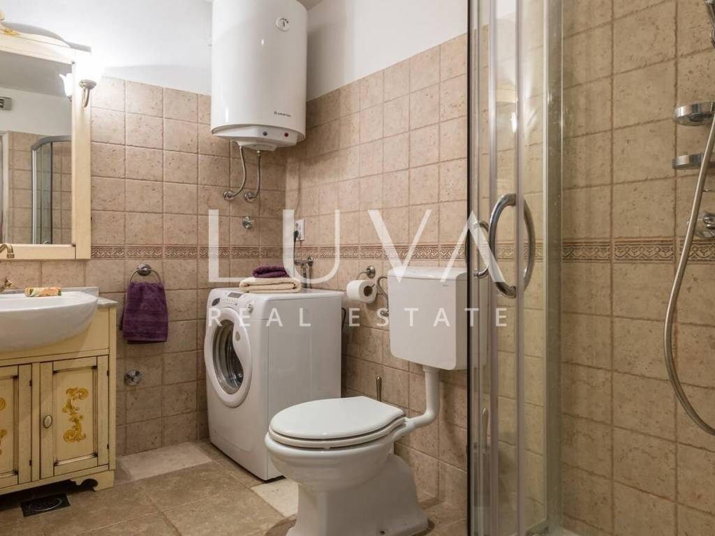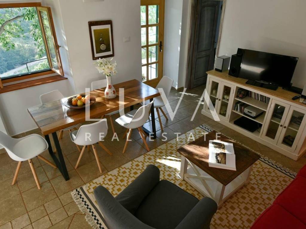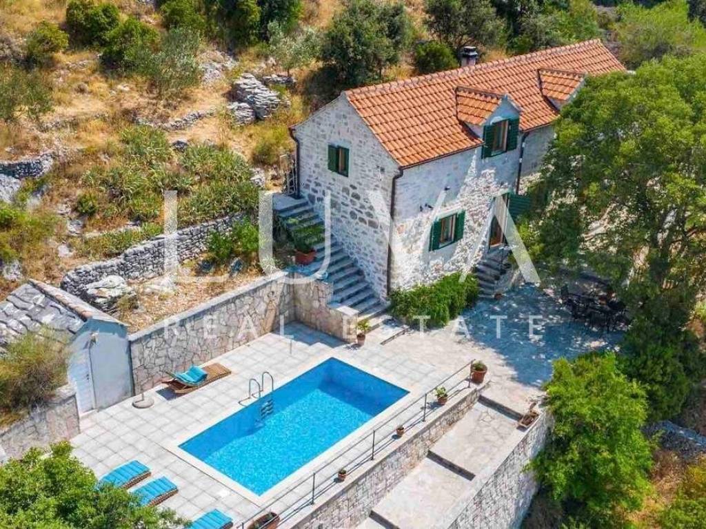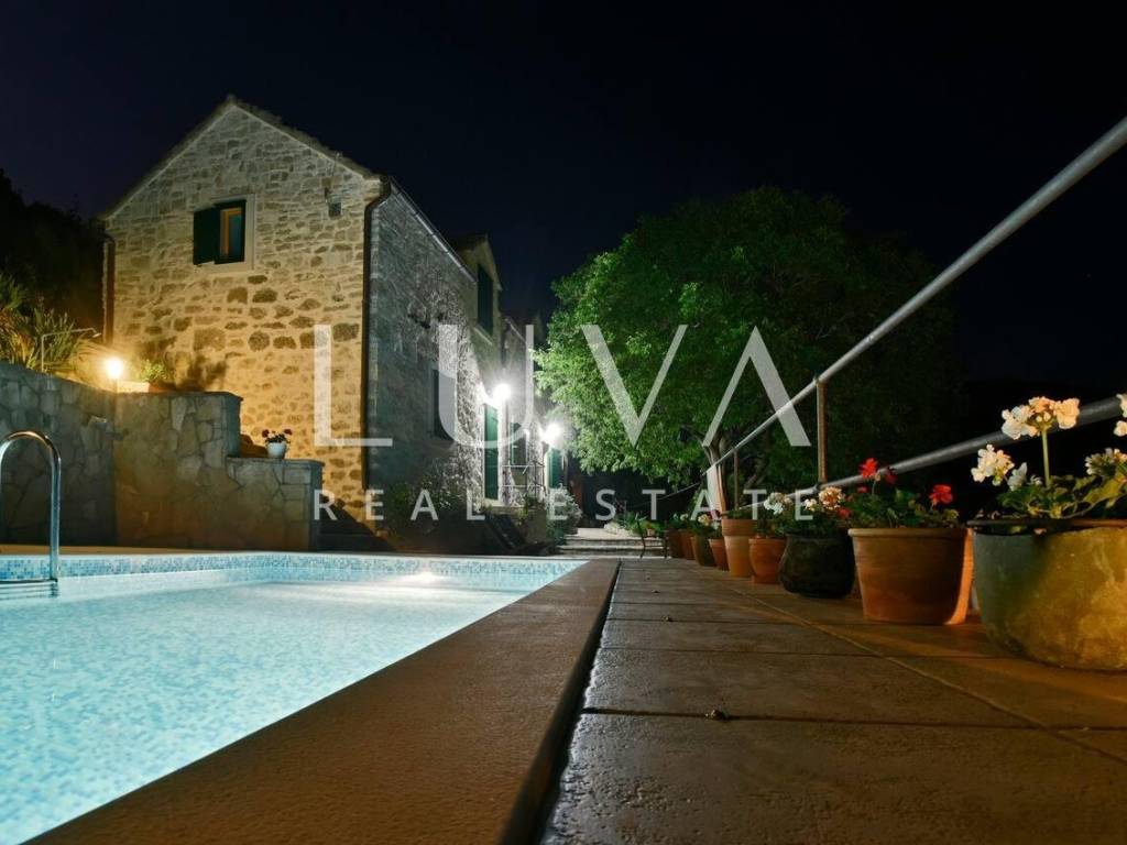 Das Innere besteht aus drei Schlafzimmern und zwei elegant gestalteten Badezimmern, und das gesamte Haus ist klimatisiert, um das ganze Jahr über Komfort zu gewährleisten. Die Renovierung wurde sorgfältig durchgeführt, mit besonderem Augenmerk auf die Erhaltung authentischer Steinelemente und die Schaffung einer Atmosphäre, die an traditionelle dalmatinische Häuser erinnert, jedoch in einem modernen Rahmen. Der Außenbereich verfügt über einen Pool von 18 m², ideal zur sommerlichen Erfrischung und Entspannung in völliger Privatsphäre.