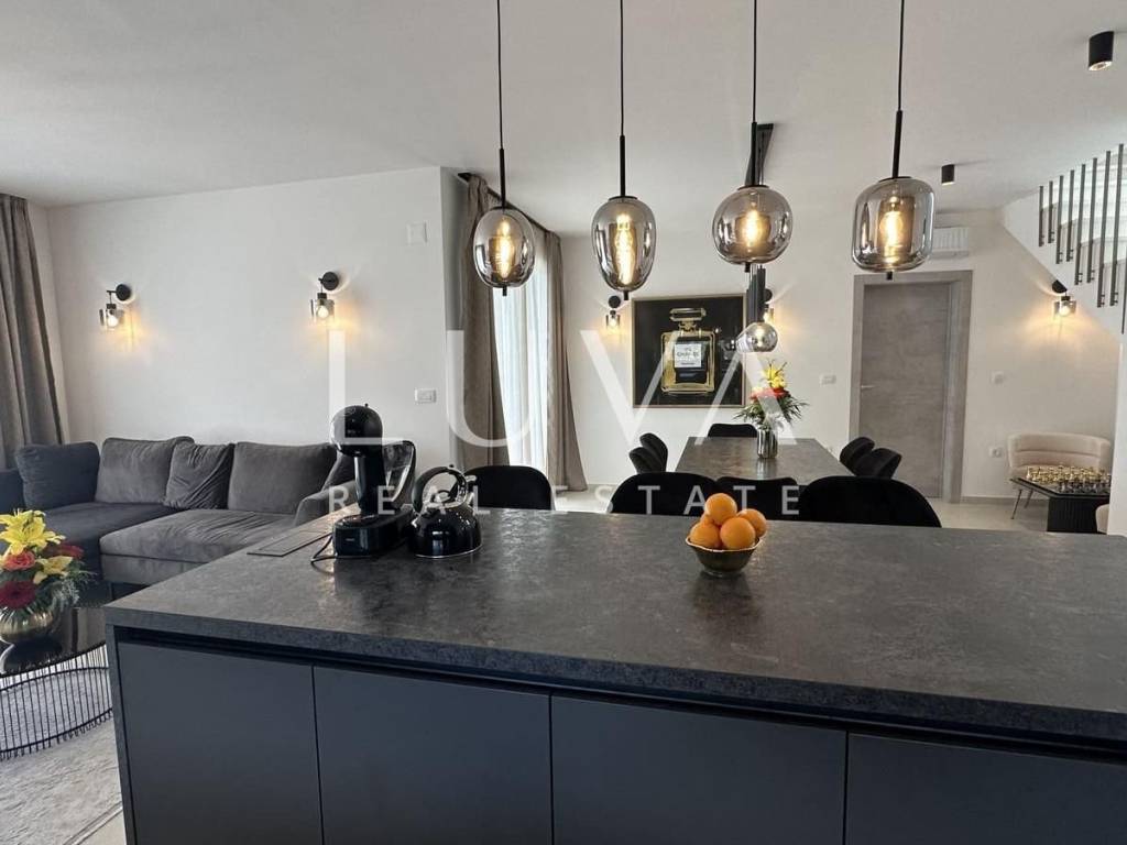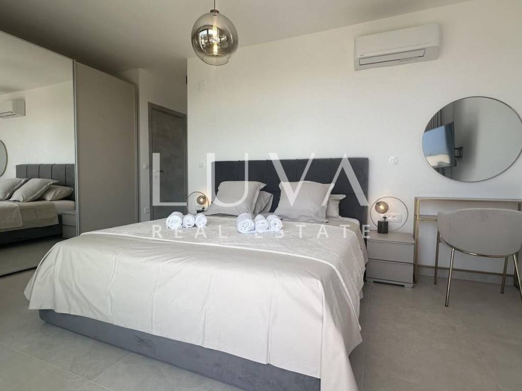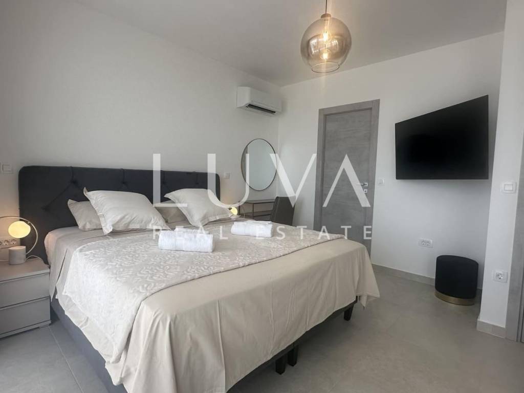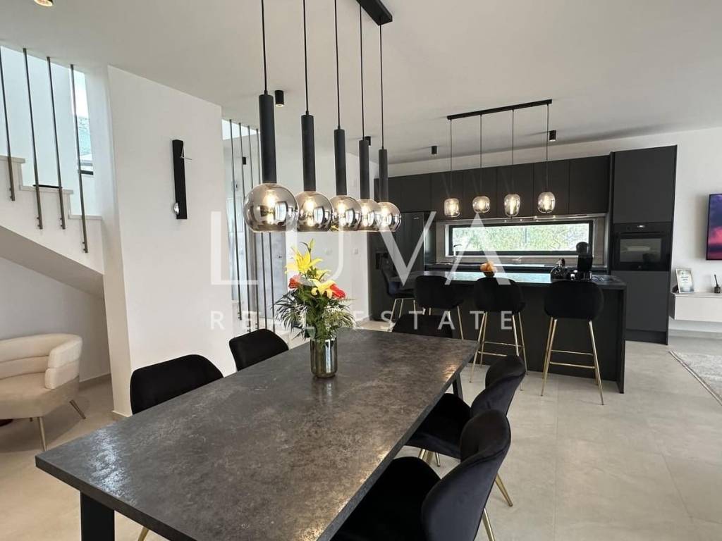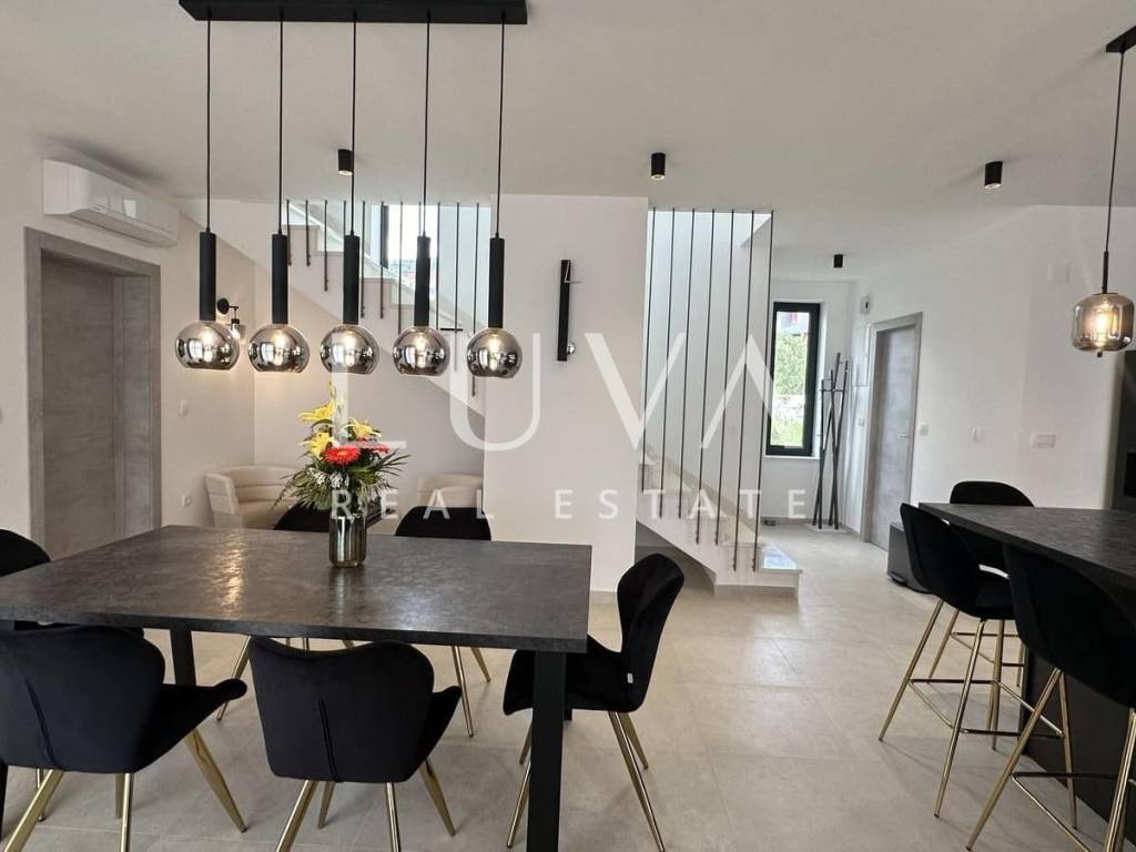 Zum Verkauf steht eine neu gebaute moderne Villa in Kaštel Stari, gelegen auf einem großzügigen Grundstück von 938 m² mit beeindruckendem Meerblick. Die Villa erstreckt sich über 245 m² Wohnfläche und bietet modernen Luxus in ruhiger Umgebung, ideal für Familienleben oder Investition im Tourismus.