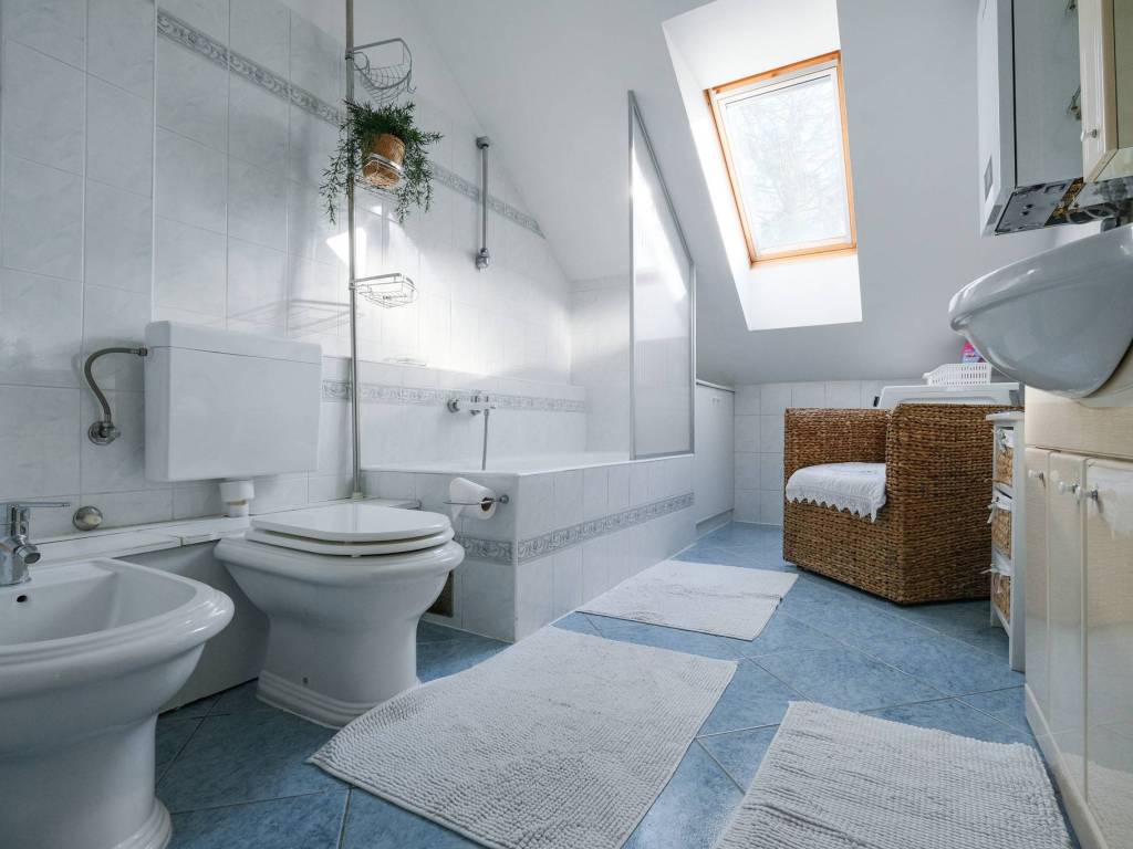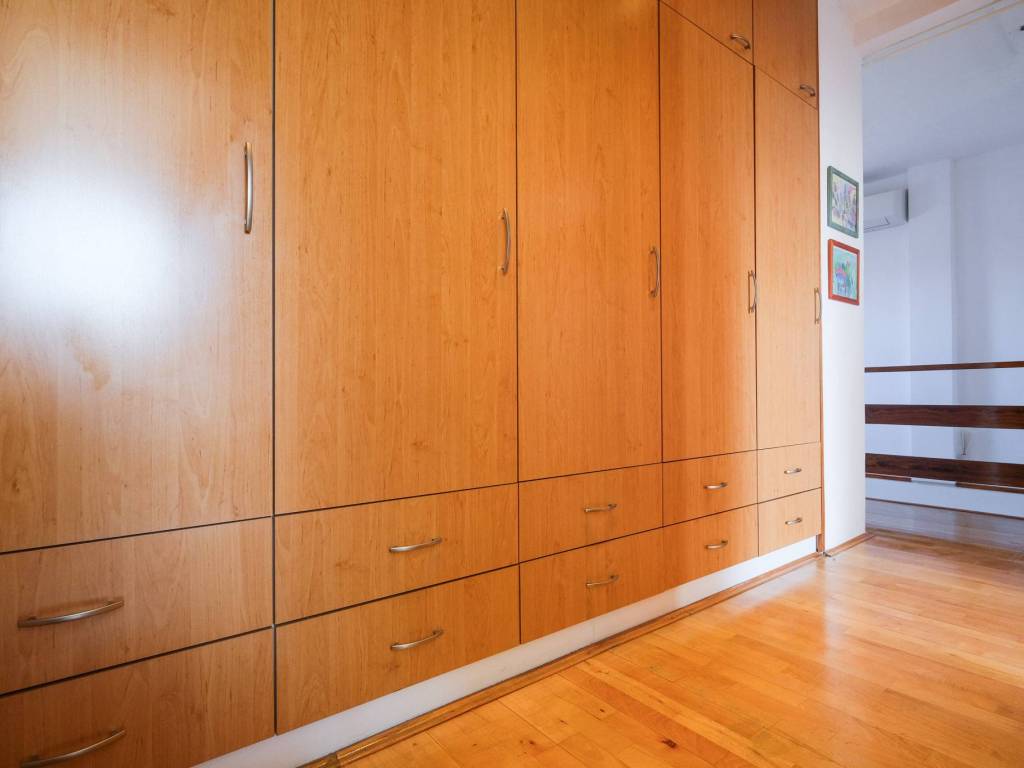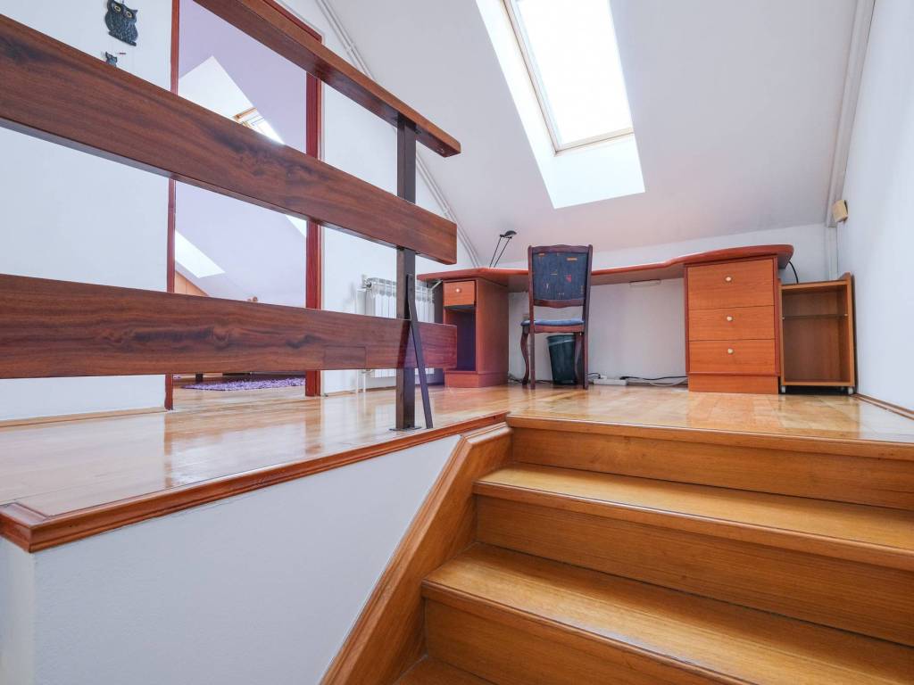 U potpunosti je opremljen i namješten s puno prostora za odlaganje, a sastoji se od donje etaže: ulaznog dijela, prostranog dnevnog boravka, velike blagovaone, balkona, kuhinje i toaleta dok se na gornjoj etaži je smješten radni kutak, tri spavaće sobe, kupaonica, ostava, garderoba i hodnik.