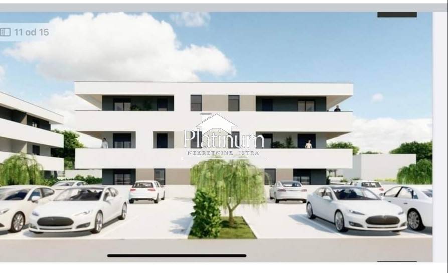 Hochwertige Bauweise und erstklassige Ausstattung, viel Licht, optimale Nutzung des Gartens, angereichert mit viel Grün, das dem Gebäude einen besonderen Wert verleiht das sind die Merkmale dieses Neubaus. Wohnung im ersten Obergeschoss mit 61,21 m. Sie besteht aus zwei Schlafzimmern, Flur, Badezimmer, Wohnzimmer mit Küche und Essbereich sowie einer Terrasse. Ein Stellplatz ist im Kaufpreis inbegriffen. Bauweise und Ausstattung: Die Wohnungen sind aus hochwertigen Materialien gefertigt und mit modernster Technik ausgestattet. Erstklassige Keramikfliesen stehen in dieser Bauphase in vier Designs zur Auswahl. PVC-Fenster und -Türen, die Glaswände bestehen aus Aluminiumprofilen. Alle Fenster sind mit Wärmeschutzglas ausgestattet. Elektrische Rollläden sind integriert. Schalldämmung sorgt für zusätzliche Privatsphäre und Wohnkomfort. Jede Wohnung verfügt über eine Klimaanlage und Fußbodenheizung im Badezimmer. Der Bau befindet sich derzeit in einer fortgeschrittenen Bauphase. Die Fertigstellung und der Einzug sind für Ende des Jahres geplant. Zahlungsmodalitäten und -bedingungen In dieser Phase werden 50 % des Wohnungspreises fällig, 40 % nach Fertigstellung der Verputzarbeiten und 10 % beim Einzug. Ideal für Familien oder als Kapitalanlage. Entfernung zum Zentrum von Pula: 2,5 km, Medulin: 4 km Weitere Informationen unter 091 924 9486