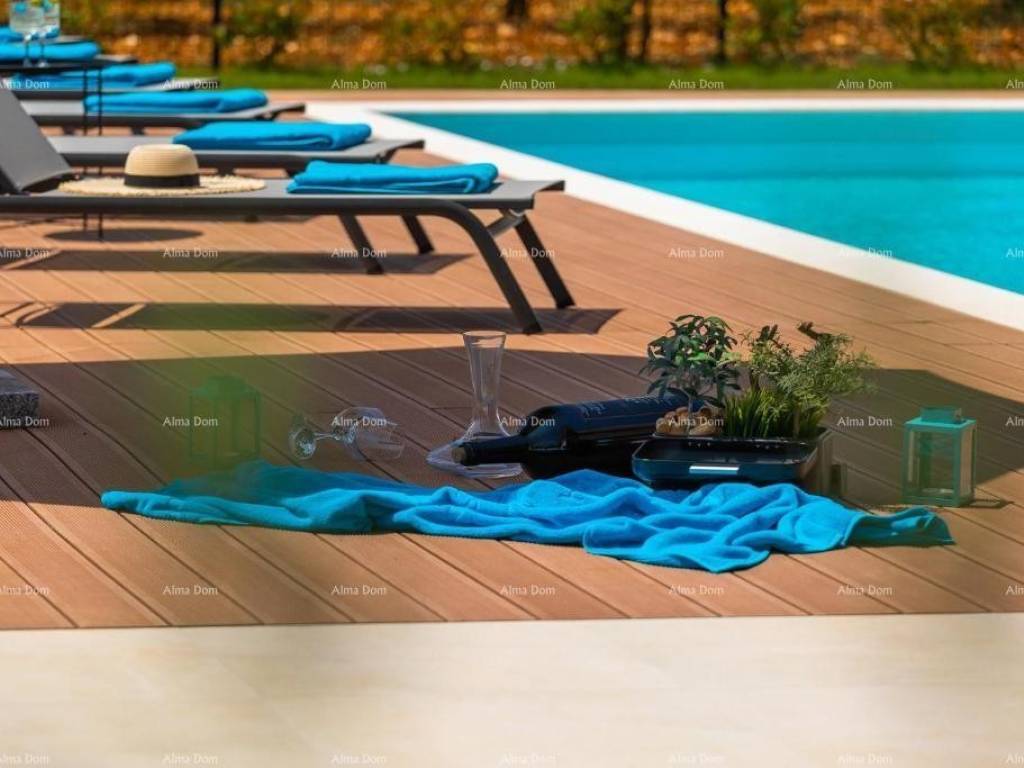 Die Umgebung von Svetvinčent, das heißt das Haus liegt an einem Ort, umgeben von viel Grün und Weinbergen. Nur wenige Kilometer vom Zentrum von Svetvinčent entfernt befindet sich diese moderne, elegante Villa mit einem großzügigen Garten von 846 m.