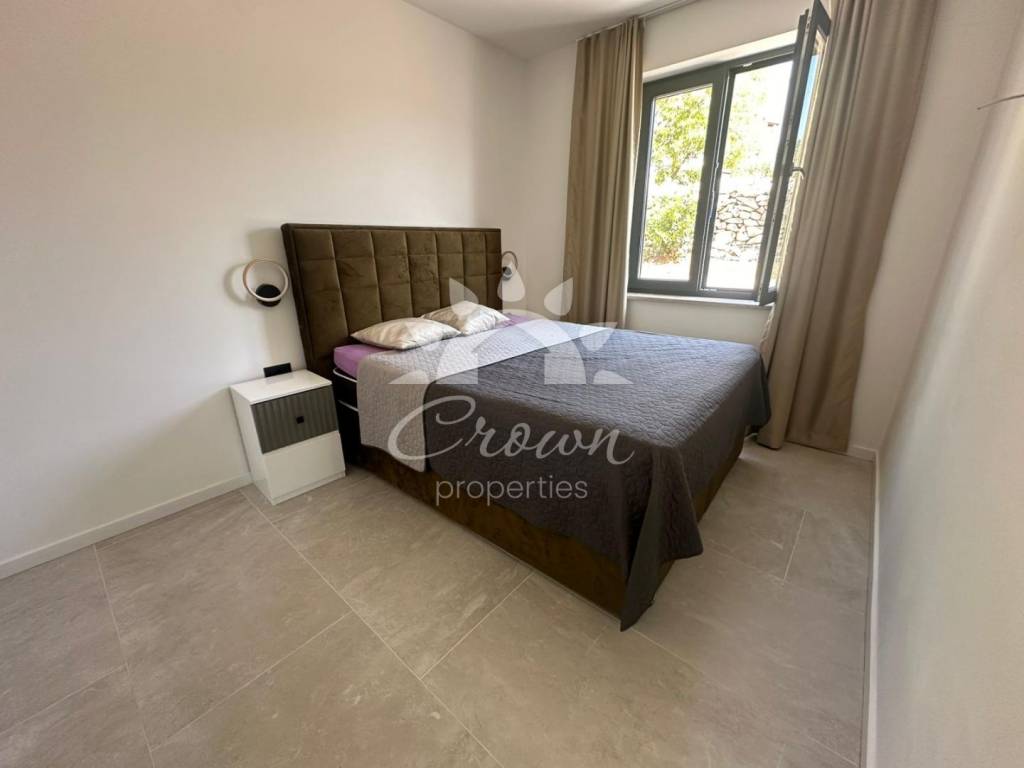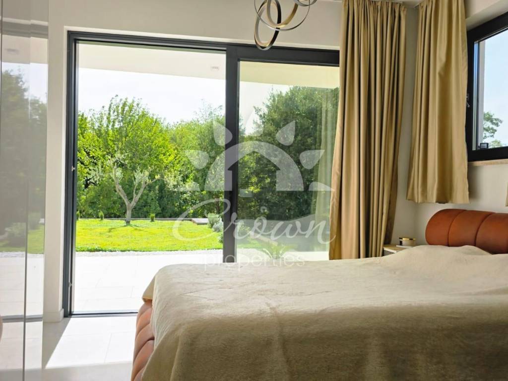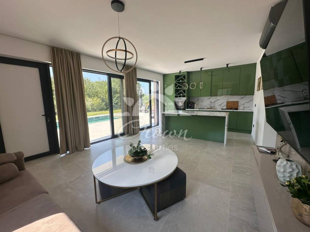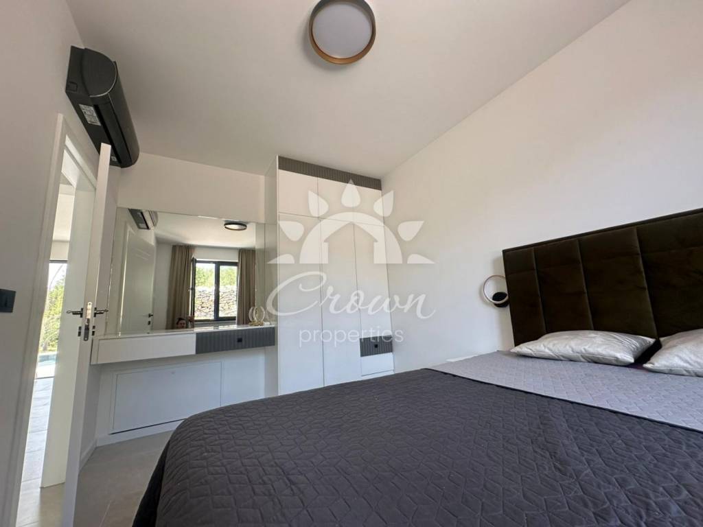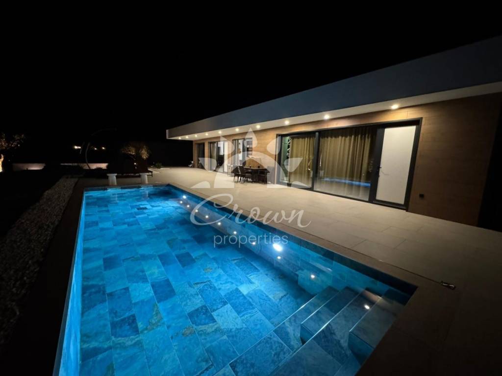 Die Villa wird vollständig möbliert und bezugsfertig verkauft. Hochwertige Materialien und modernes Design sorgen für ein elegantes Wohnambiente. Jeder Raum ist mit Klimaanlage ausgestattet, während eine Fußbodenheizung im gesamten Objekt ganzjährigen Komfort gewährleistet. Der gepflegte Außenbereich bietet ein hohes Maß an Privatsphäre und Funktionalität. Er ermöglicht Parkmöglichkeiten für mehrere Fahrzeuge sowie einen einfachen Zugang zum umzäunten Grundstück. Im Zentrum des Gartens befindet sich ein 27 m² großer Swimmingpool, ausgekleidet mit Keramikfliesen und ergänzt durch eine Sonnenterrasse. Der Pool verfügt über ein automatisches Befüllungs- und Entleerungssystem, was die Wartung besonders komfortabel macht.