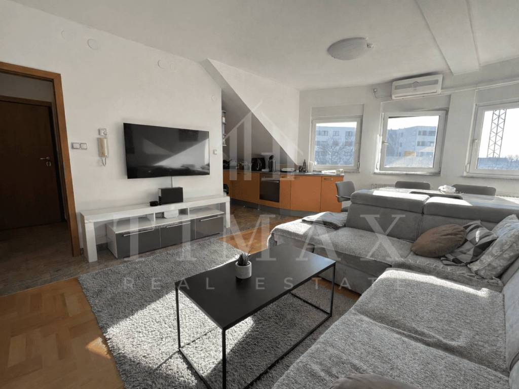 The building is equipped with an intercom system, and the apartment also includes a basement storage unit offering additional space. Outdoor parking is available in front of the building. The location is highly convenient, in close proximity to Arena Centar and public transport stations, ensuring excellent connectivity and easy access to all amenities necessary for comfortable everyday living.