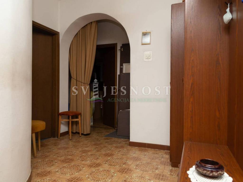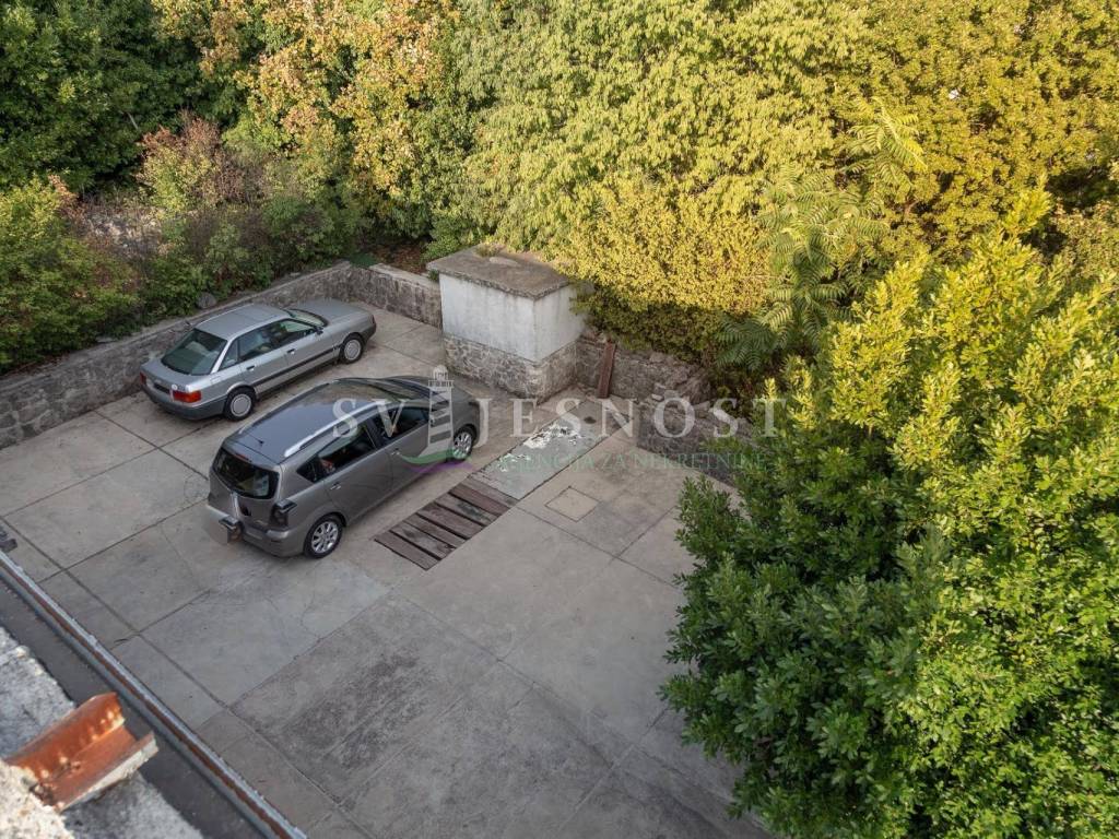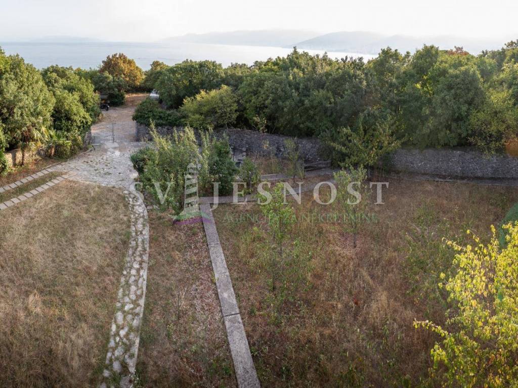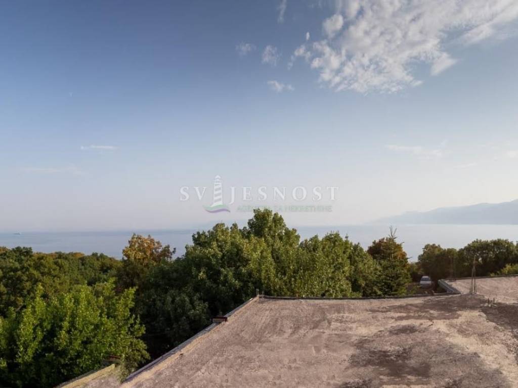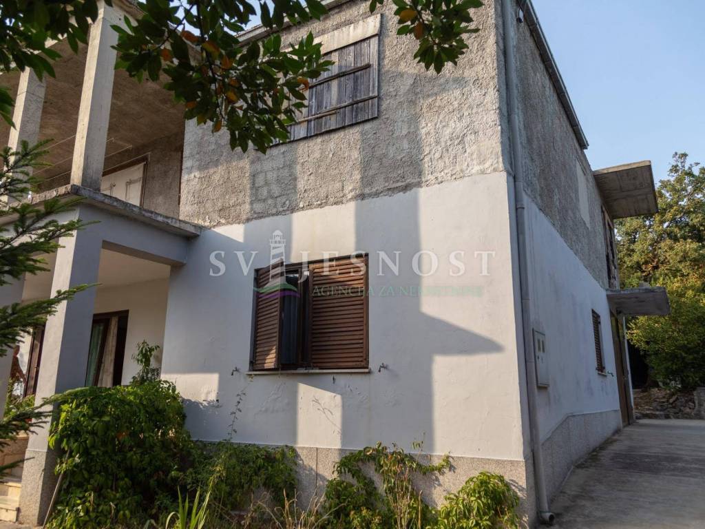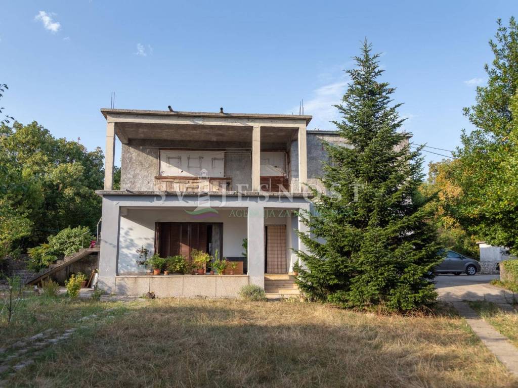 Das Erdgeschoss wird von den großen überdachten Terrassen betreten, in den Flur und eine private Küche mit einem geräumigen Esszimmer, Wohnzimmer, zwei Schlafzimmern und einem kleinen praktischen kleinen Raum. Das Obergeschoss ist über eine Außentreppe zu erreichen, und die Wohnung vel. 130m2 hat Trennwände und muss komplett renoviert werden. Vom Balkon vel. cca 18m2 bietet einen freien Blick auf den Kvarner Die Entfernung vom Meer und den Stränden beträgt nur 600m zu Fuß.