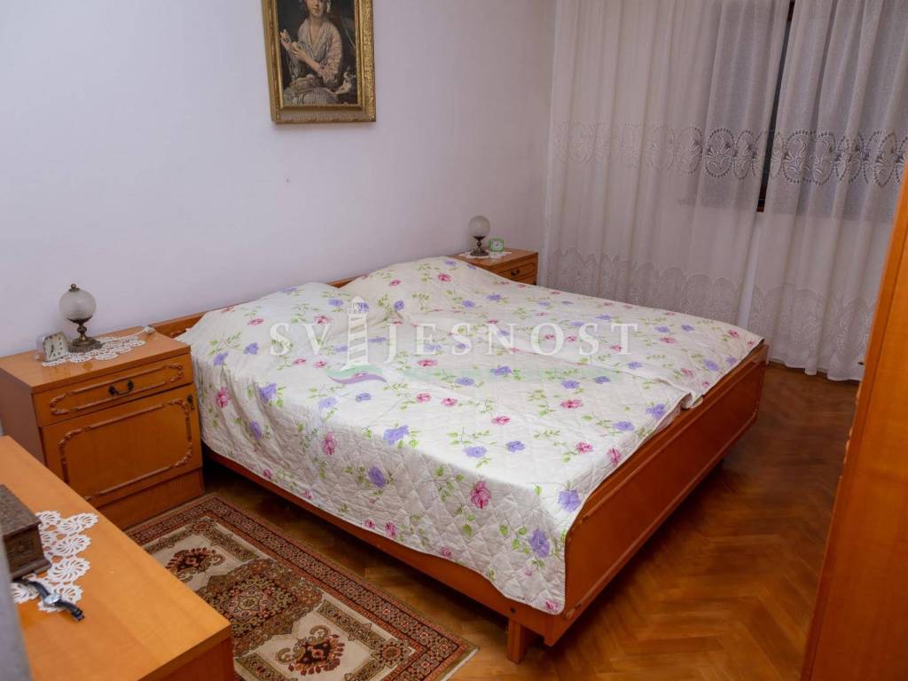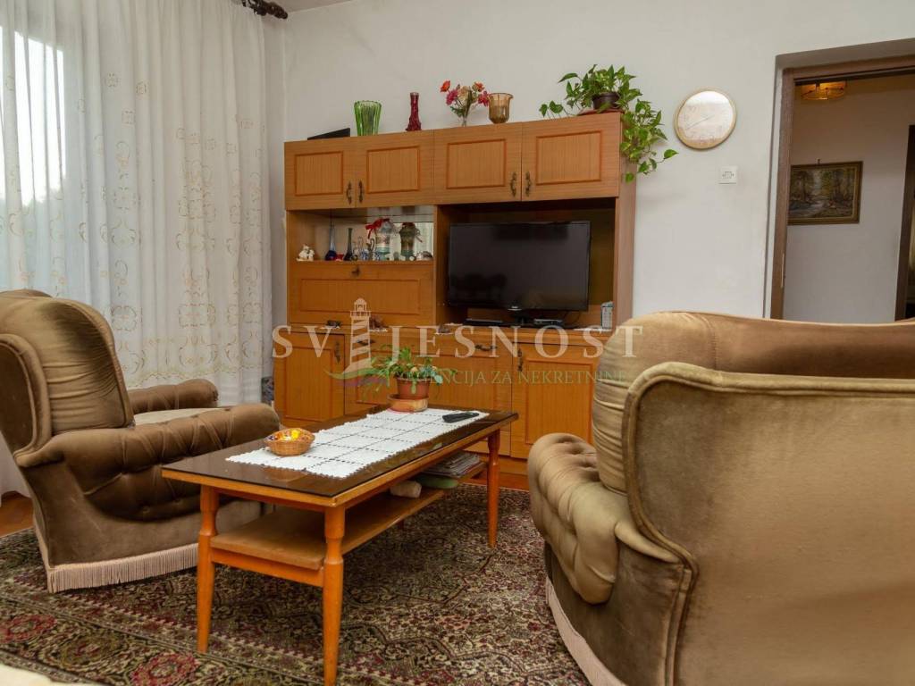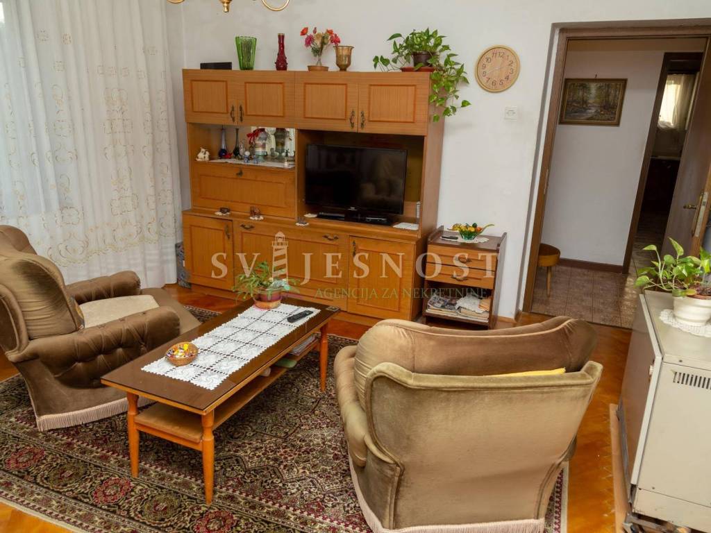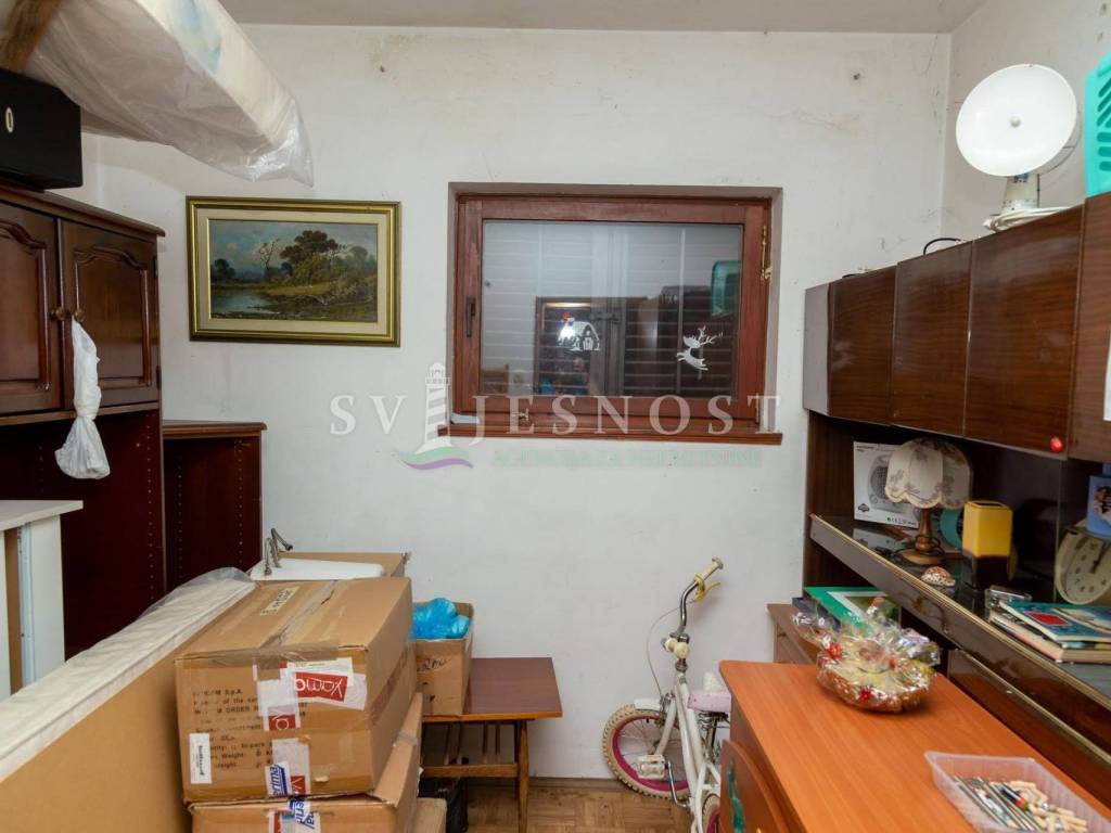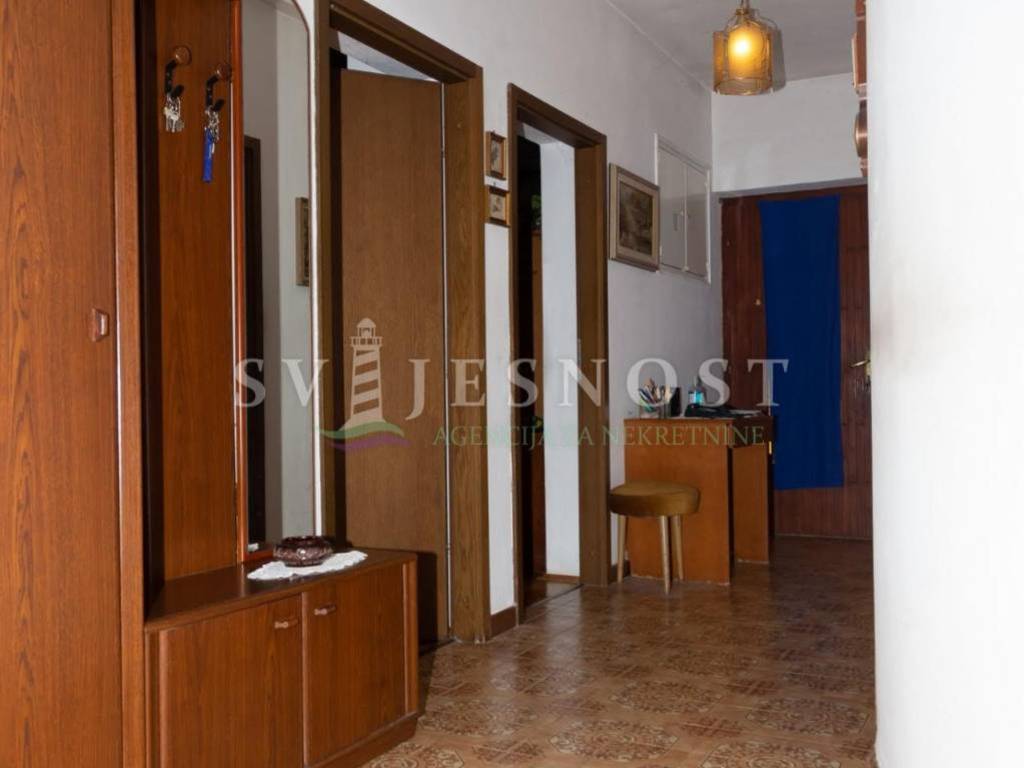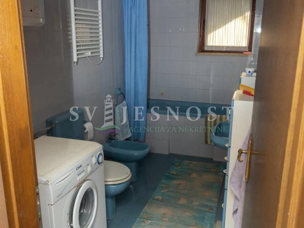 Das Erdgeschoss wird von den großen überdachten Terrassen betreten, in den Flur und eine private Küche mit einem geräumigen Esszimmer, Wohnzimmer, zwei Schlafzimmern und einem kleinen praktischen kleinen Raum. Das Obergeschoss ist über eine Außentreppe zu erreichen, und die Wohnung vel. 130m2 hat Trennwände und muss komplett renoviert werden. Vom Balkon vel. cca 18m2 bietet einen freien Blick auf den Kvarner Die Entfernung vom Meer und den Stränden beträgt nur 600m zu Fuß.