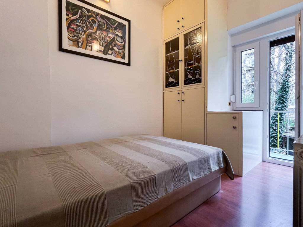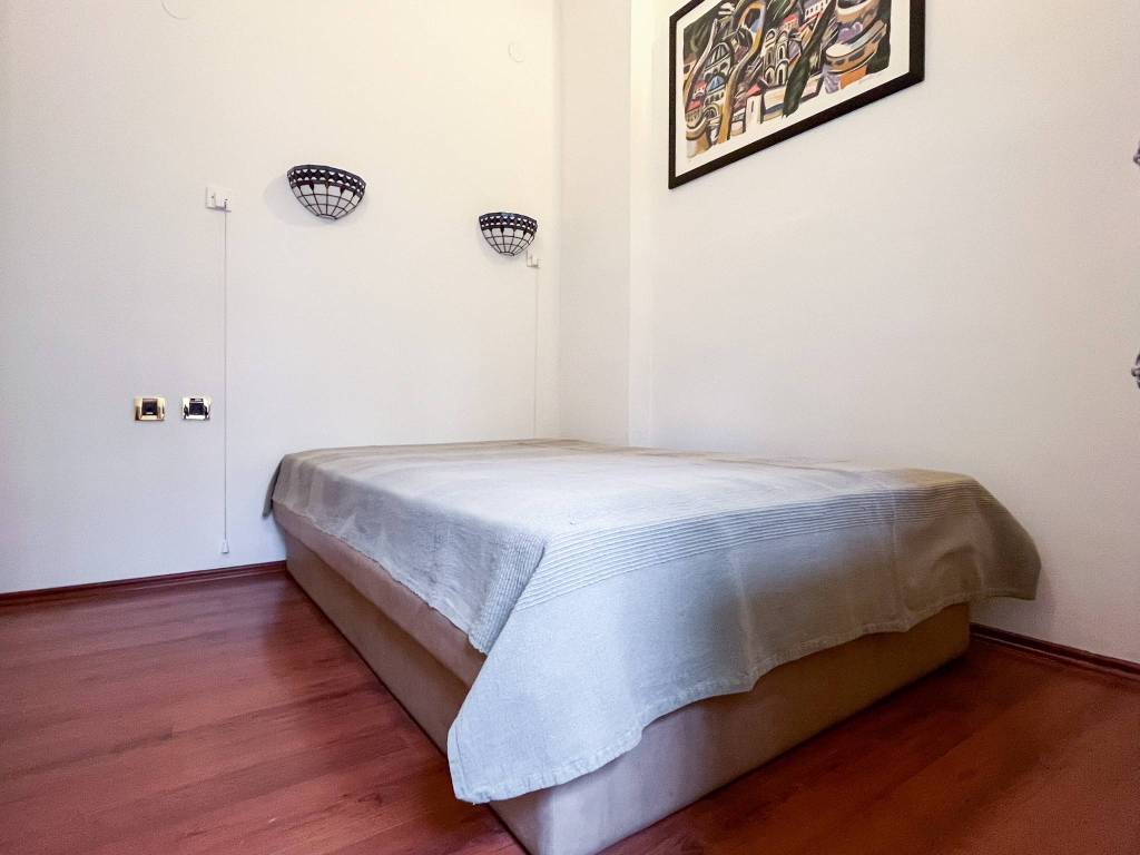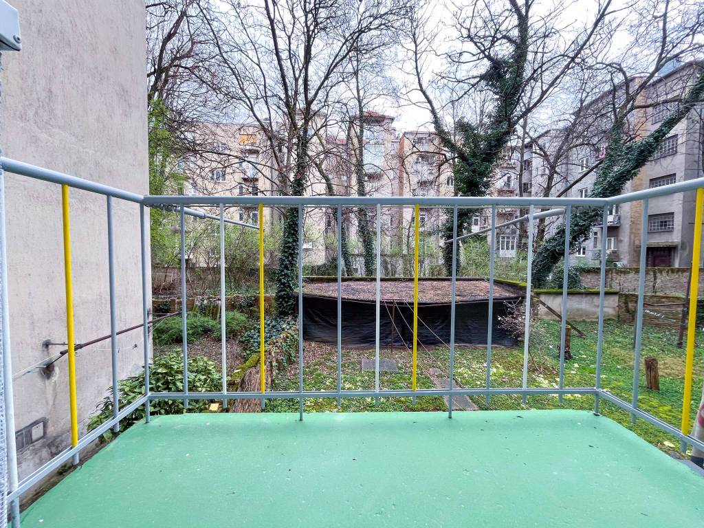 Površine je 45m2, a sastoji se od dnevnog boravka s blagovaonicom i kuhinjom, kupaonice, spavaće sobe i balkona s pogledom na zeleno dvorište.