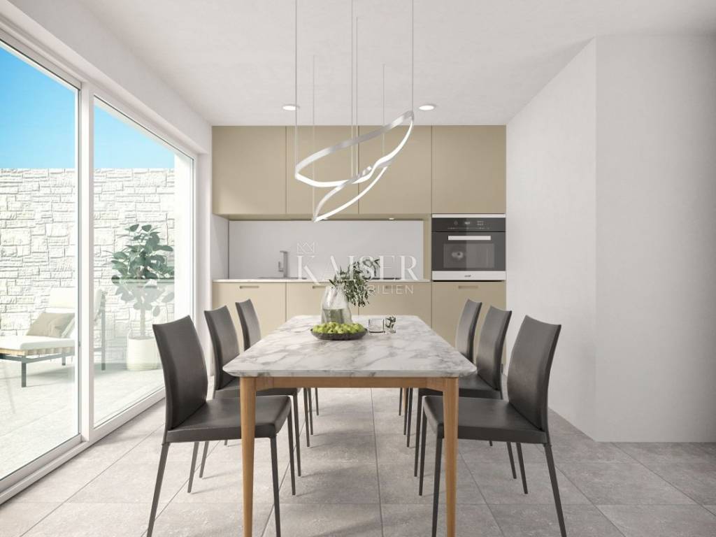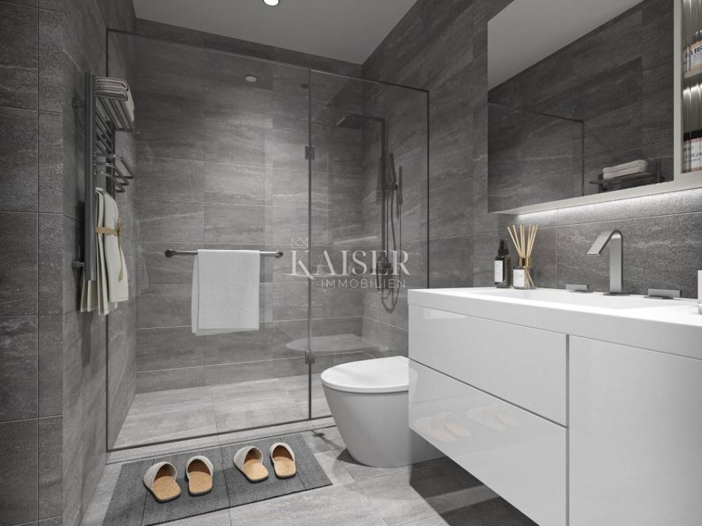 Crikvenica ist ein charmanter Küstenort an der Kvarner-Riviera, bekannt für seine langen Kiesstrände, das kristallklare Meer und das milde mediterrane Klima. Neben seinem vielfältigen touristischen Angebot bietet Crikvenica zahlreiche Restaurants, Strandpromenaden, kulturelle Veranstaltungen und eine hervorragende Verkehrsanbindung an Kroatien und das Ausland. Es ist ein ideales Reiseziel für einen Familienurlaub, aber auch ein attraktiver Standort für Immobilieninvestitionen. Kaiser Immobilien präsentiert Ihnen ein exklusives Projekt in Crikvenica – sieben modern gestaltete Häuser in erhöhter und ruhiger Lage mit freiem Panoramablick auf das Meer und die Stadt, dank der unmittelbaren Nähe zum Grüngürtel, in dem keine Bebauung erlaubt ist. Umgeben von mediterraner Natur bieten diese Immobilien die perfekte Kombination aus Privatsphäre, natürlicher Schönheit und schnellem Zugang zu Promenaden, Stränden sowie zahlreichen Gastronomie- und Freizeiteinrichtungen. Eines der Häuser des Projekts erstreckt sich über zwei Etagen und hat eine Gesamtfläche von 66,70 m². Es verfügt außerdem über einen privaten Garten von 74 m² und einen Swimmingpool. Das Erdgeschoss umfasst ein geräumiges Wohnzimmer, ein Esszimmer und eine offene Küche mit einer Fläche von 28,80 m² sowie eine Gästetoilette mit einer Fläche von 2,10 m². Vom Wohnzimmer aus gelangt man direkt auf eine nicht überdachte Terrasse mit einer Fläche von 10,20 m², auf der sich ein privater Swimmingpool und ein angelegter Garten befinden, in dem Sie das mediterrane Ambiente genießen können. Eine Innentreppe führt in den ersten Stock, wo sich zwei Schlafzimmer, ein 4,90 m² großes Badezimmer mit Dusche und Toilette sowie ein 1,10 m² großer Stellplatz für Waschmaschine und Trockner befinden. Eines der Schlafzimmer hat Zugang zu einer überdachten Terrasse der gleichen Größe wie die im Erdgeschoss und bietet einen atemberaubenden Meerblick. Bei der Inneneinrichtung wurde besonderes Augenmerk auf Komfort und Ästhetik gelegt – die Räume sind dank großer Glasflächen, die den Innen- mit dem Außenbereich verbinden, lichtdurchflutet. Es wurden hochwertige Materialien wie Aluminiumschreinereiarbeiten und Vinylböden (LVT oder SPC) verwendet. Alle Räume sind mit Fußbodenheizung ausgestattet, und für zusätzlichen Komfort sorgt eine Klimaanlage in jedem Zimmer. Während der Bauphase haben Käufer die Möglichkeit, den Innenraum durch die Auswahl von Keramik und Veredelungsmaterialien zu personalisieren. Nach vorheriger Absprache und gegen Aufpreis sind auch spätere Änderungen an der Raumaufteilung oder dem Inhalt möglich. Jede Wohneinheit verfügt über einen sicheren Parkplatz, und es besteht die Möglichkeit, während der Bauphase zusätzliche Parkplätze zu errichten. Der besondere Wert dieses Projekts liegt in seiner Lage – der Meerblick wird durch zukünftige Bebauung der Umgebung nicht beeinträchtigt, was den langfristigen Wert der Investition zusätzlich sichert. Die Immobilie wird unmöbliert verkauft, und die Fertigstellung des Projekts wird für Ende 2026 erwartet. Dies ist die ideale Wahl für alle, die eine luxuriöse und ruhige Oase an der Adria suchen, sowohl zur privaten Nutzung als auch als Investition im attraktivsten Touristengebiet von Crikvenica. Nähe zu Annehmlichkeiten: Crikvenica, Zentrum – 1 km Restaurant – 1 km Café – 900 m Geschäft – 1 km Meer/Strand – 1,1 km Yachthafen – 1 km Apotheke – 1,1 km Bushaltestelle – 1,1 km Sehenswürdigkeiten – 900 m Rijeka – 32 km Flughafen – 23 km Entfernung zu größeren Städten: Crikvenica – Ljubljana: 147 km Crikvenica – Wien: 519 km Crikvenica – Budapest: 508 km Crikvenica – Prag: 846 km Crikvenica – München: 548 km Crikvenica – Zagreb: 167 km Die Maklerprovision für den Käufer beträgt 3 % + MwSt. und wird im Falle des Kaufs einer Immobilie beim Abschluss des ersten Rechtsgeschäfts bezahlt. Interessierte Käufer können die Immobilie nur nach vorheriger Unterzeichnung eines Maklervertrags besichtigen. ID-CODE: 127-148 Wenn Sie die Immobilie persönlich besichtigen möchten, wenden Sie sich bitte an: Jennifer Hofmann E-Mail: jennifer@kaiser-immobilien.hr Tel: +385-91-515-0887 http://kaiser-immobilien.hr/ Oder Davor Piškulić E-Mail: davor@kaiser-immobilien.hr Tel: + 385 95 583 8240 WhatsApp, Viber