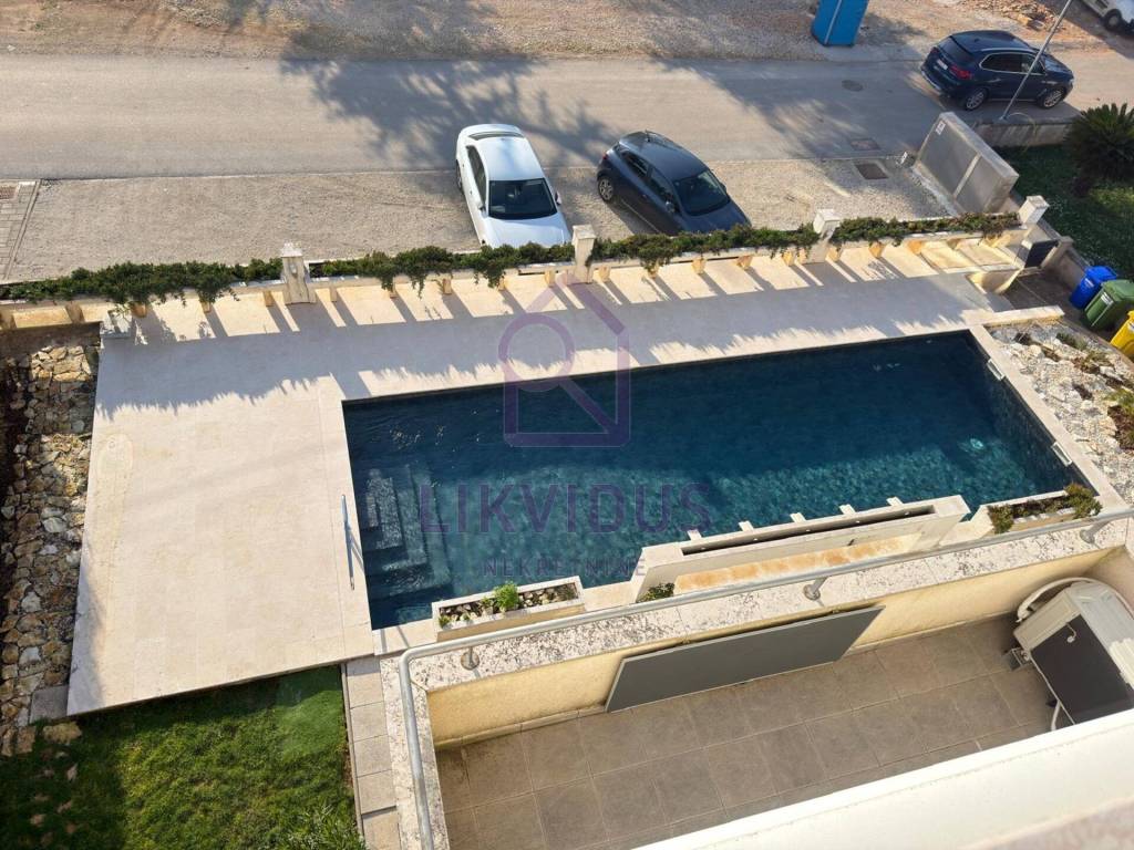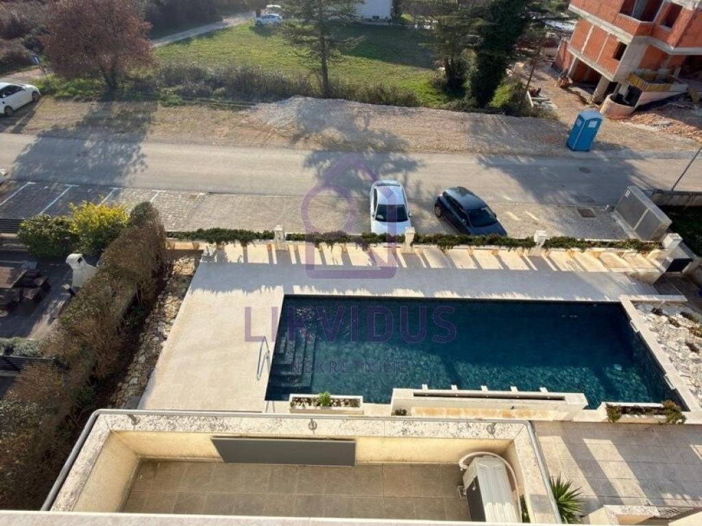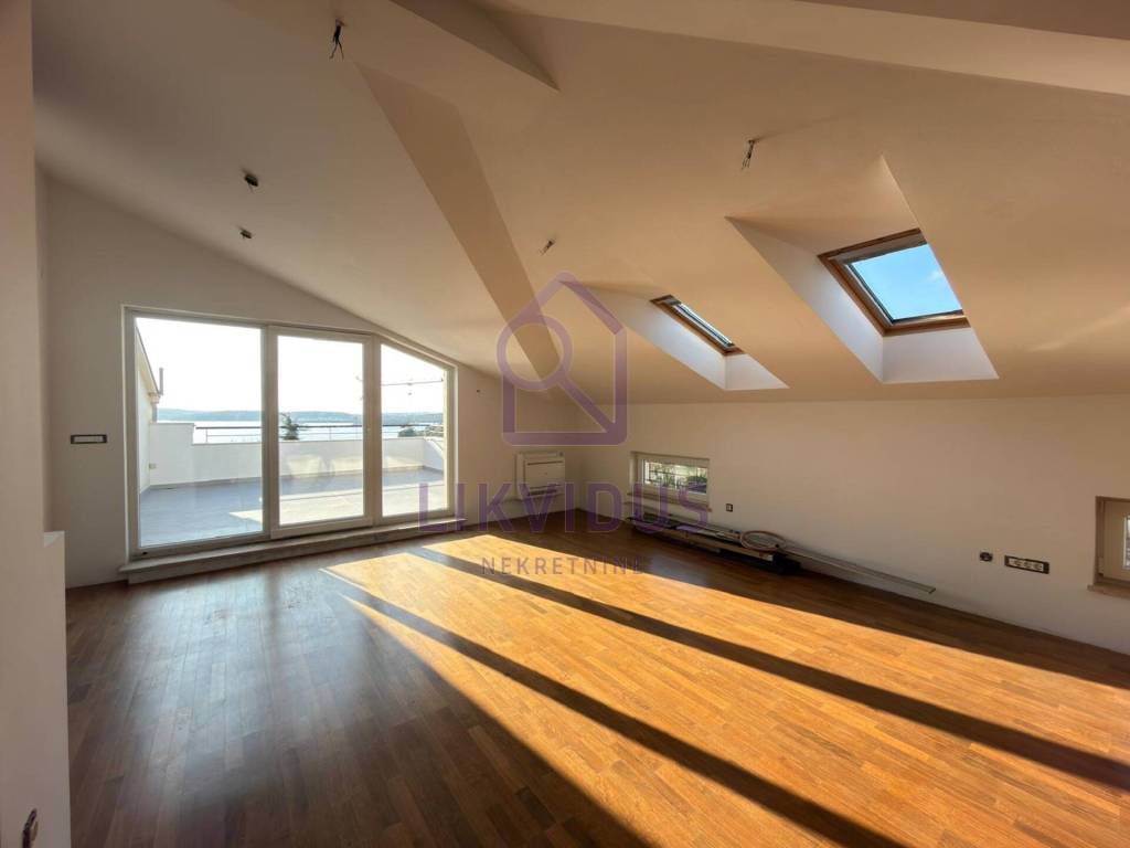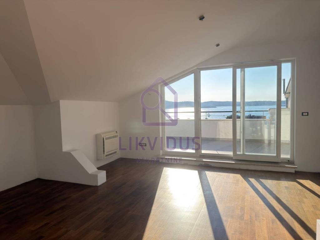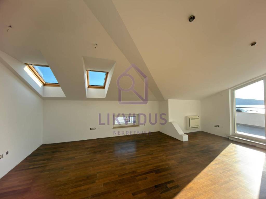 For sale: A stunning luxury penthouse in Medulin, located just 150 meters from the sea, offering a permanent and unobstructed panoramic view. Due to the buildings position and zoning laws, the view from both terraces can never be blocked by future construction.