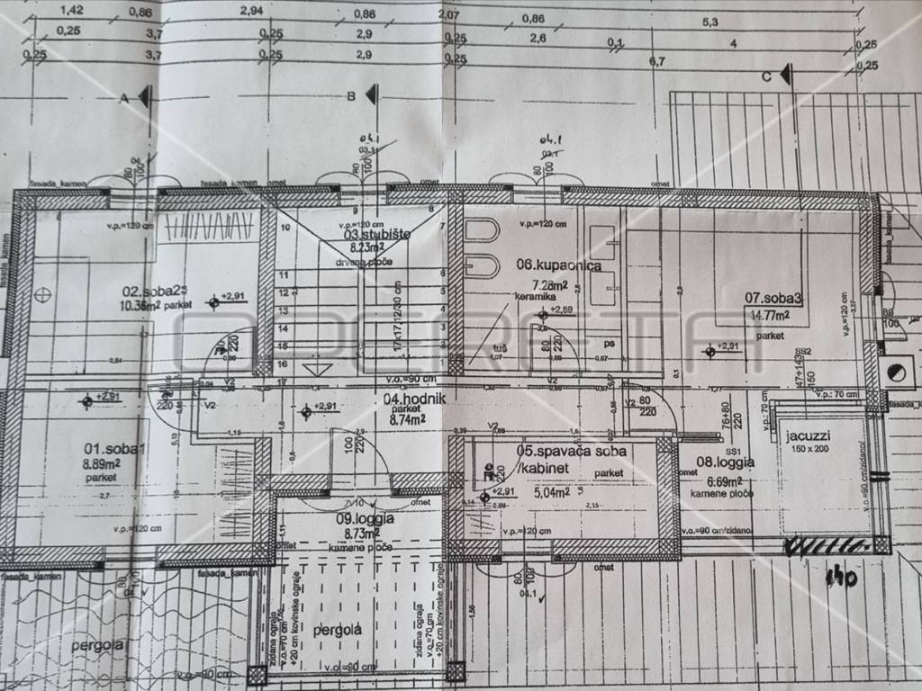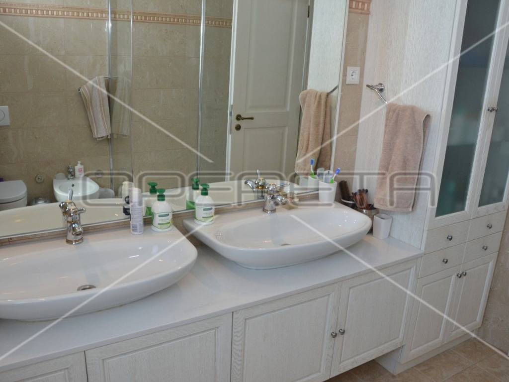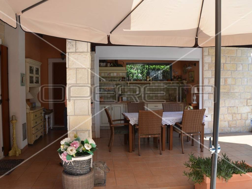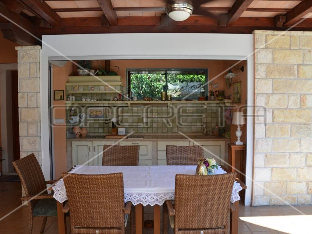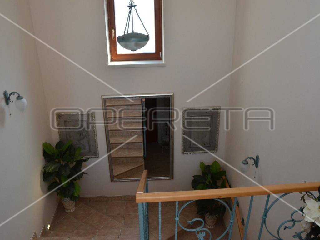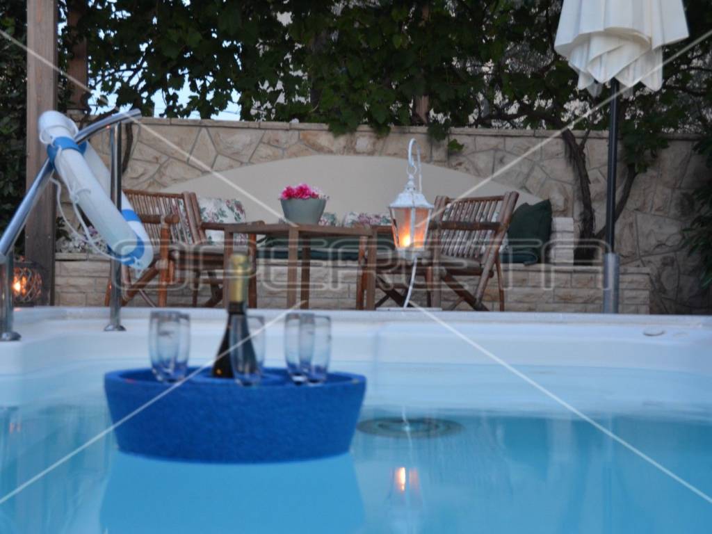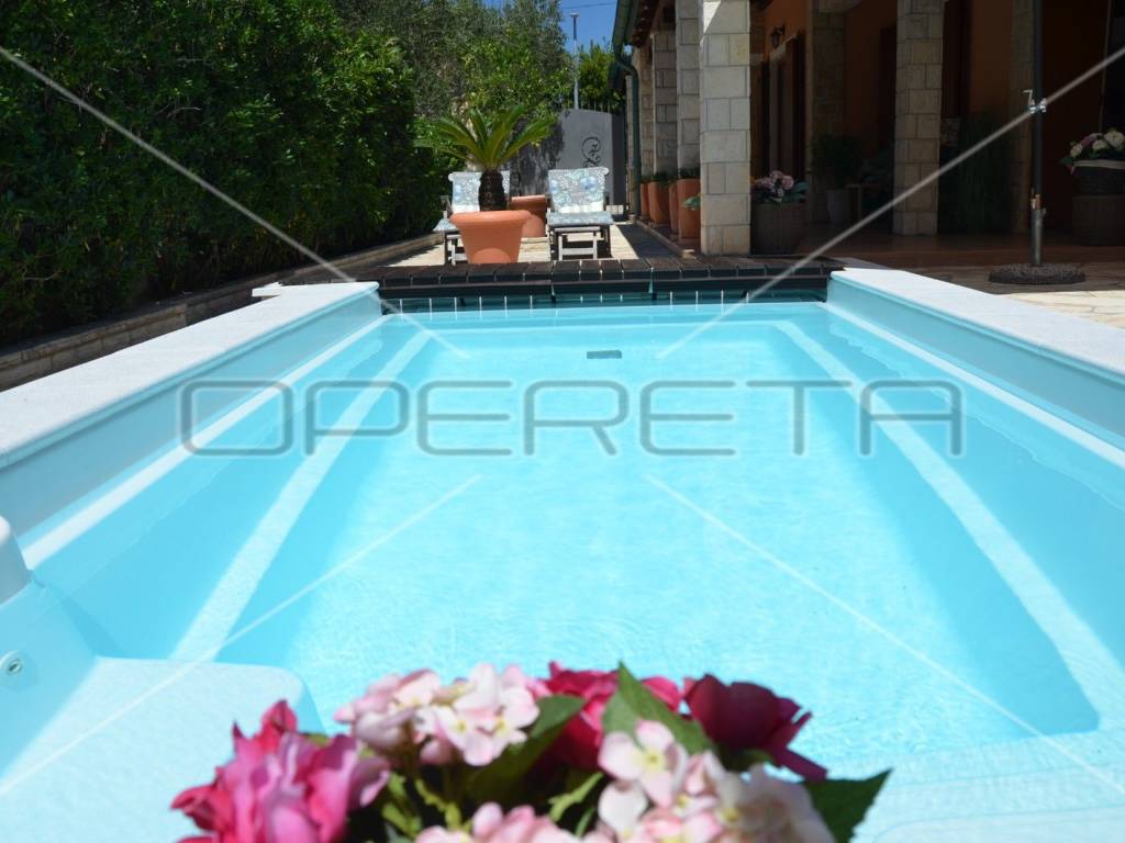 Diese einzigartige, luxuriöse und rustikale Villa im traditionellen Stil wurde 2010 erbaut und bietet auf einer Gesamtfläche von 197 m Ruhe und Privatsphäre dank eines gepflegten und umzäunten Gartens in unmittelbarer Nähe zum Zentrum von Novalja. Nur 250 m vom Hauptplatz und 350 m vom Meer und Strand entfernt. Die Villa erstreckt sich über zwei Etagen: Im Erdgeschoss befinden sich ein Wohnzimmer mit Kamin und Zugang zur Terrasse, ein Esszimmer mit Küche, ein großer Aufenthaltsraum, ein Badezimmer und ein separates WC. Eine elegante Treppe führt in das Obergeschoss mit drei Schlafzimmern, eines davon mit Zugang zu einem Whirlpool für drei Personen, einer Loggia, einem Badezimmer mit WC und einem Flur. Die hochwertige Bauweise besticht durch sorgfältig ausgewählte Details und die Ausstattung mit erstklassigen Materialien, Geräten und italienischen Möbeln. Vom Wohnzimmer im Erdgeschoss gelangt man auf eine überdachte Terrasse mit angrenzender Sommerküche und einem Duschraum. Der großzügige Garten mit 3 x 5 m großem Swimmingpool lädt zum Verweilen und Genießen ein. Privater Luxus im Herzen von Novalja, unweit des Meeres! Sehr empfehlenswert!