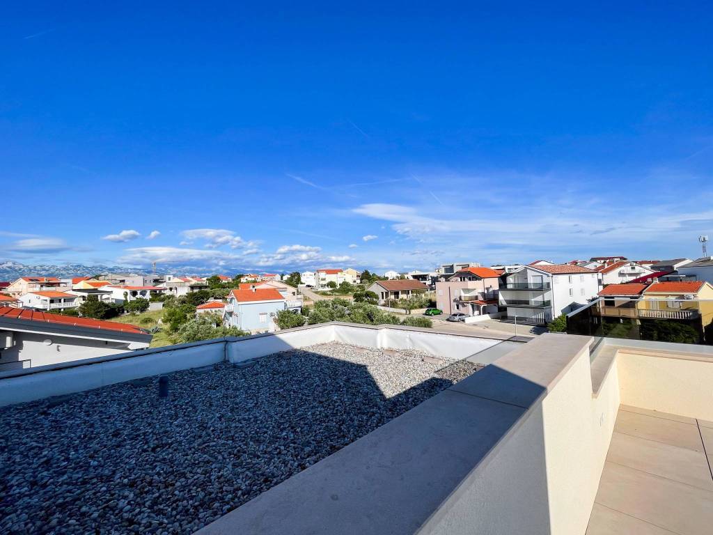Apartman ima ukupnu korisnu površinu od 111,265m2, proteže se na dvije etaže i dvostrane je orijentacije zapad-jug. Posebnost nekretnine su dvije velikie terase (natkrivena i ona na ravnom krovu) s lijepim pogledom.Također mu pripada i VANJSKO PARKIRNO MJESTO.