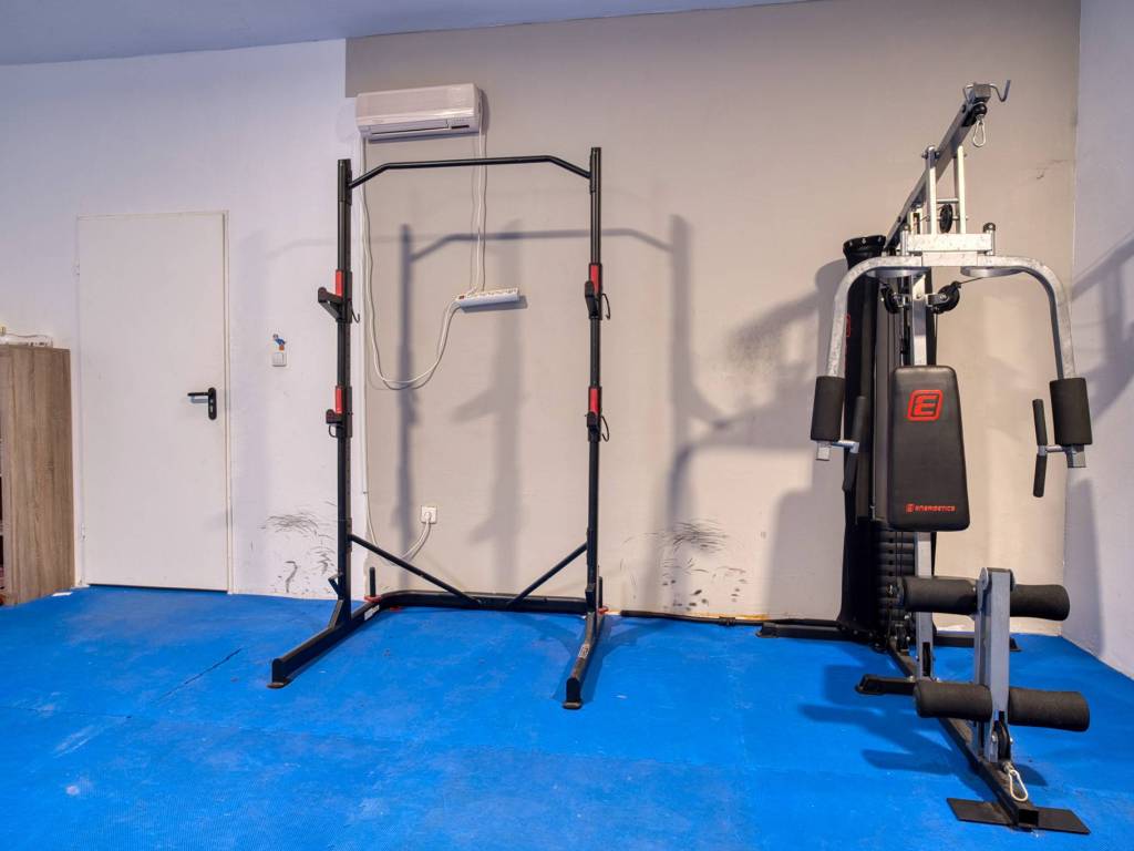 Privatni prostor od 52 m za vježbanje i opuštanje se nalazi u podrumu zgrade. Opremljen je spravama, kupaonicom i infracrvenom saunom. Stanu također pripadaju privatna garaža od 19 m, vanjsko parkirno mjesto i spremište u podrumu od 4,5 m.