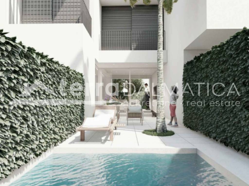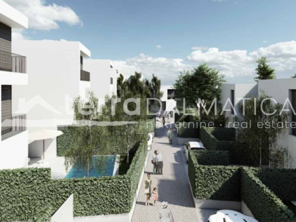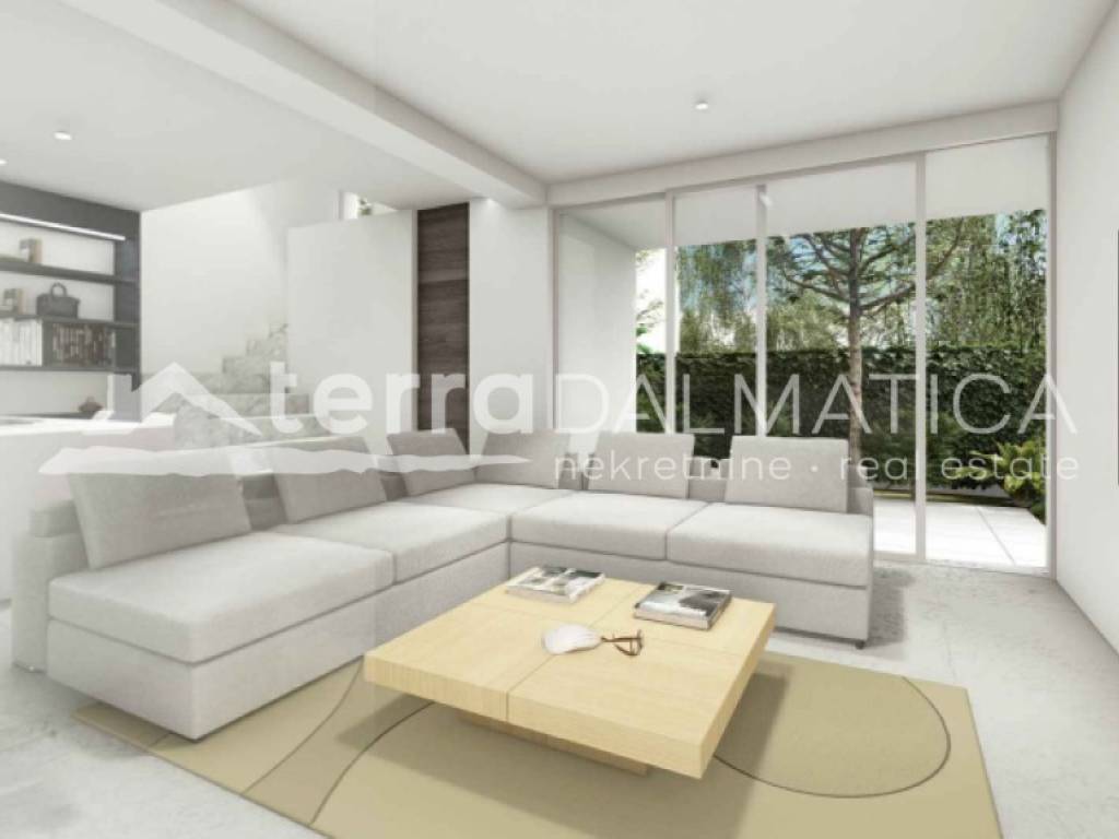 Eine Reihenhausvilla mit einer Wohnfläche von 109 m², Garten und privatem Pool steht zum Verkauf. Sie befindet sich in einer ruhigen und gepflegten Gegend von Tribunj. Das Anwesen vereint Funktionalität, Ästhetik und hohe Bauqualität und ist somit ideal für ein komfortables Familienleben oder als Kapitalanlage zur touristischen Vermietung.